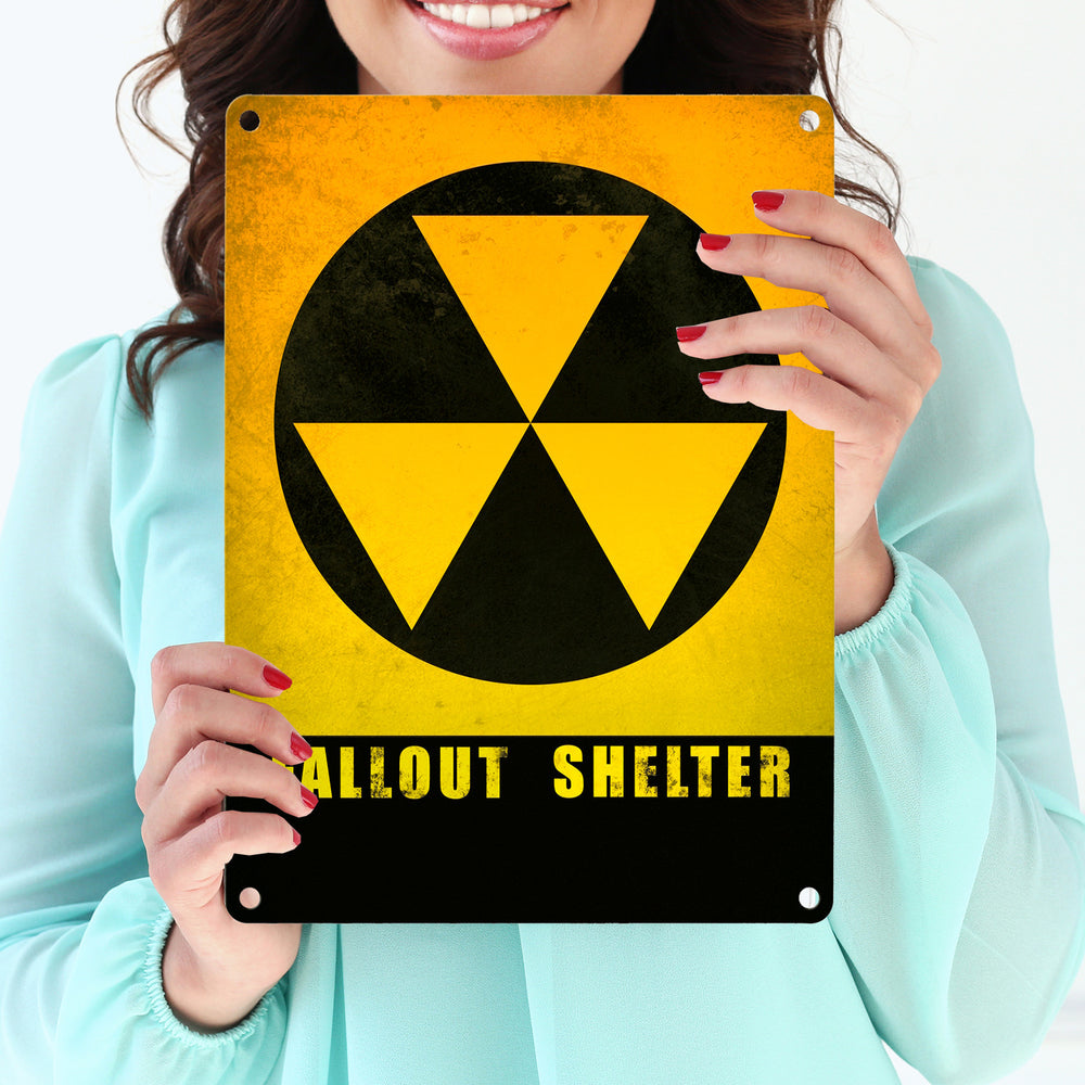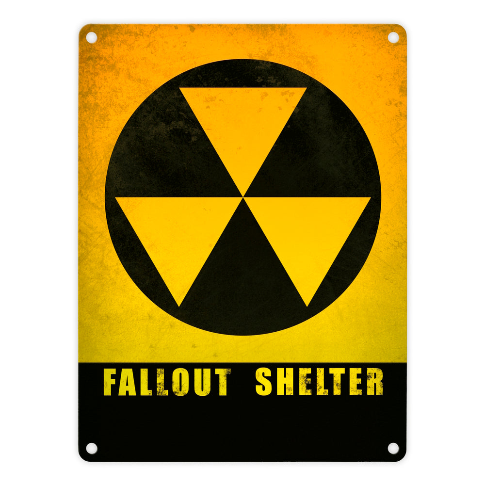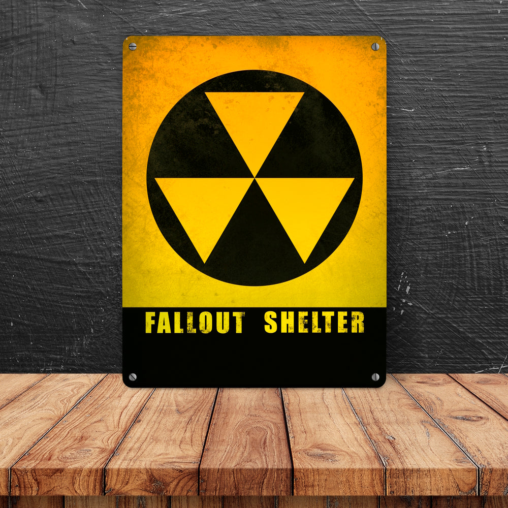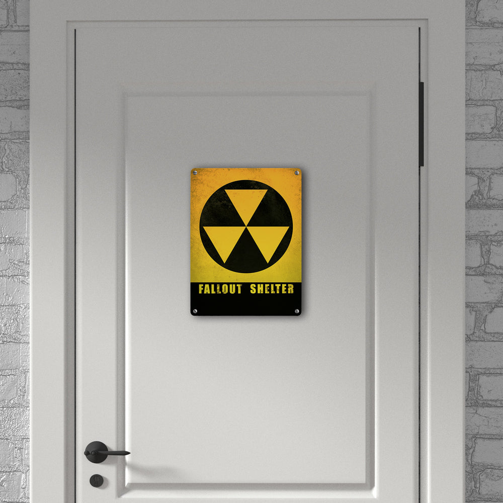 Metallschild mit Fallout Shelter Atomschutzbunker Motiv