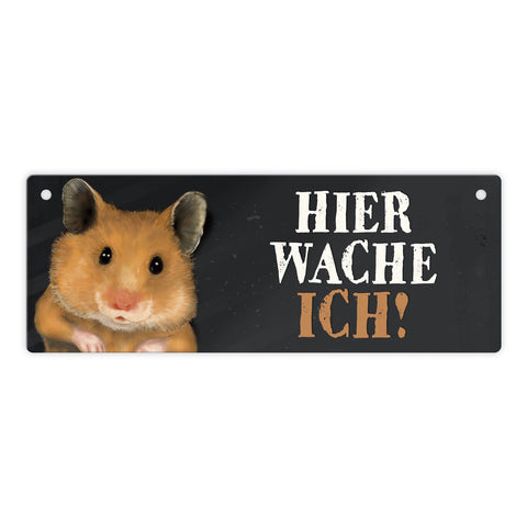 Metallschild mit Hamster Motiv und Spruch: Hier wache ich!