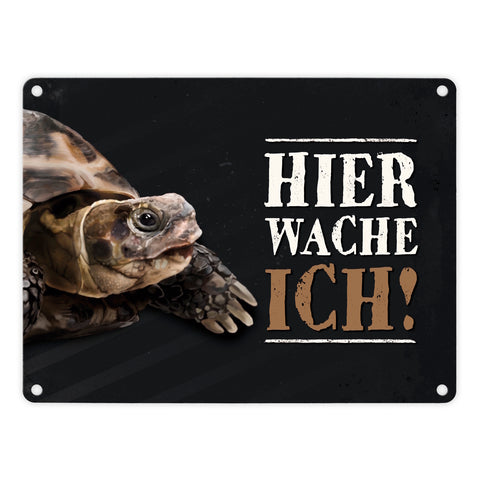 Metallschild mit Schildkröte Motiv und Spruch: Hier wache ich!
