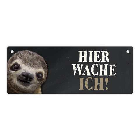 Metallschild mit Faultier Motiv und Spruch: Hier wache ich!