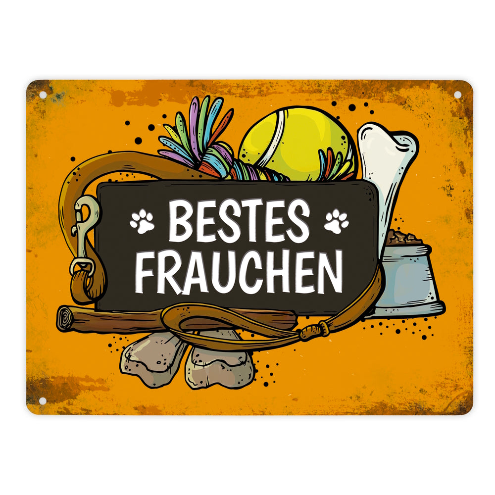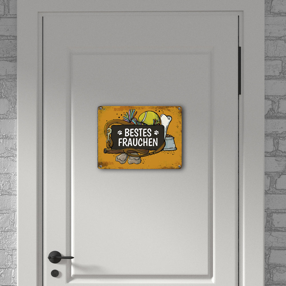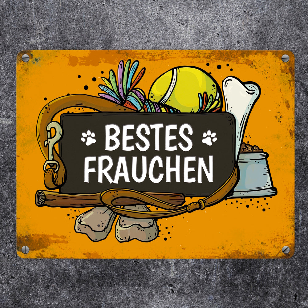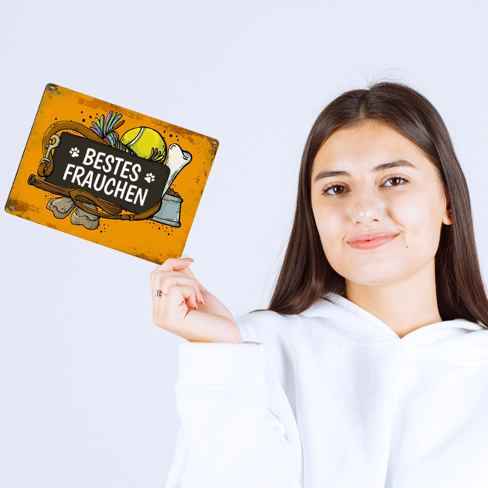 - 1x Metallschild mit Spruch: Bestes Frauchen in der gewählten Größe