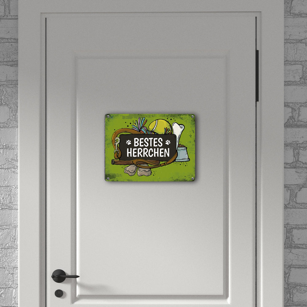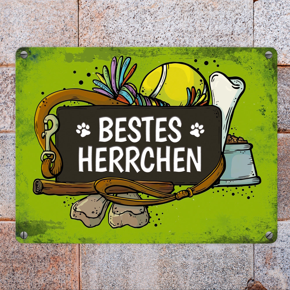 - 1x Metallschild mit Spruch: Bestes Herrchen in der gewählten Größe