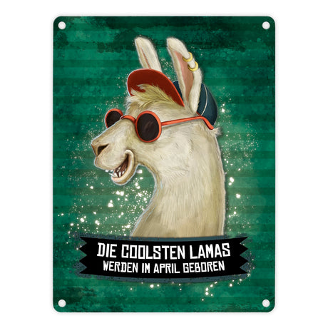 Metallschild mit Spruch: Die coolsten Lamas werden im April geboren