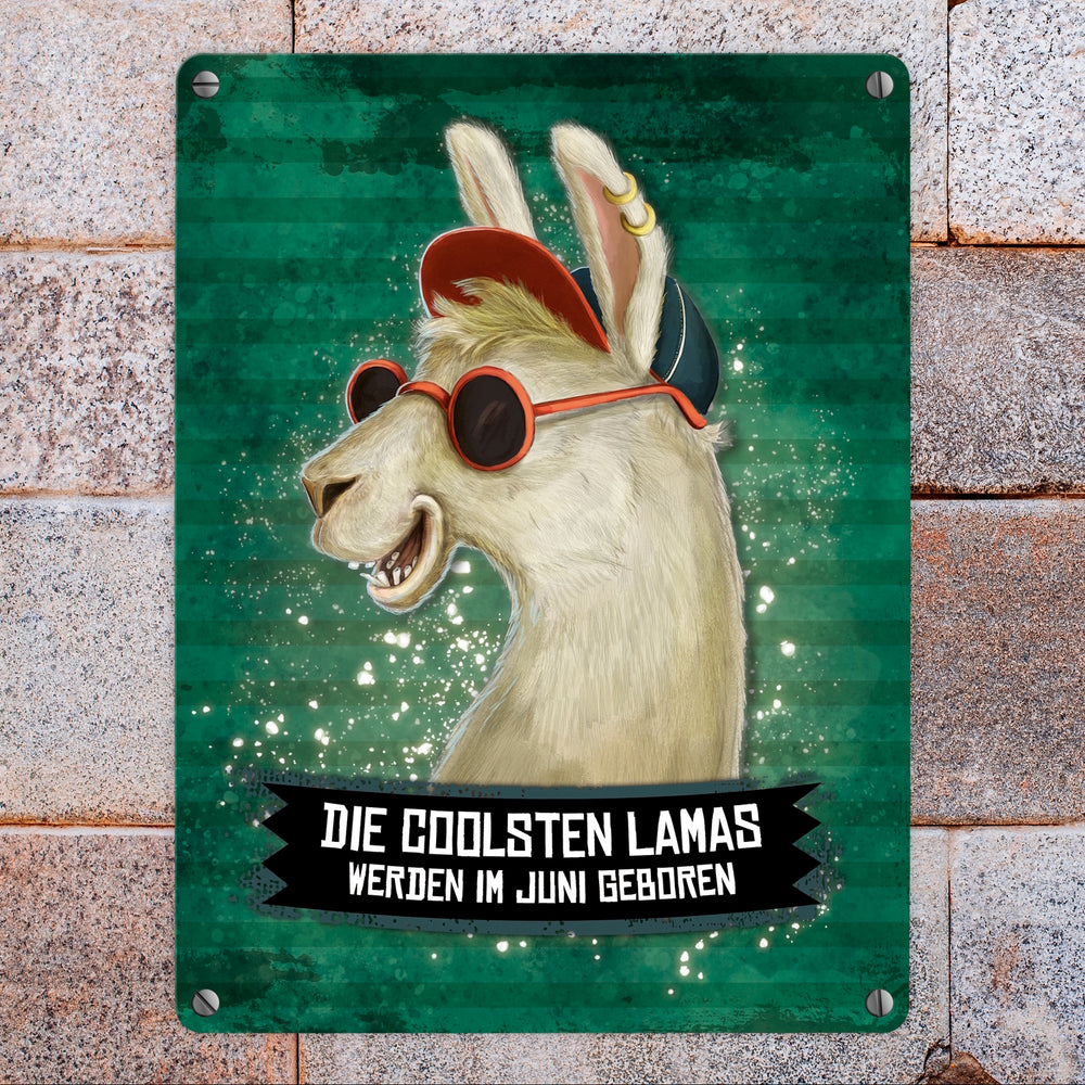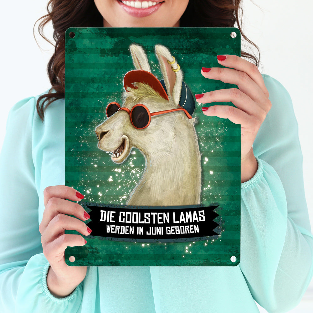 • 1x Metallschild mit Spruch: Die coolsten Lamas werden im Juni geboren in der gewählten Größe