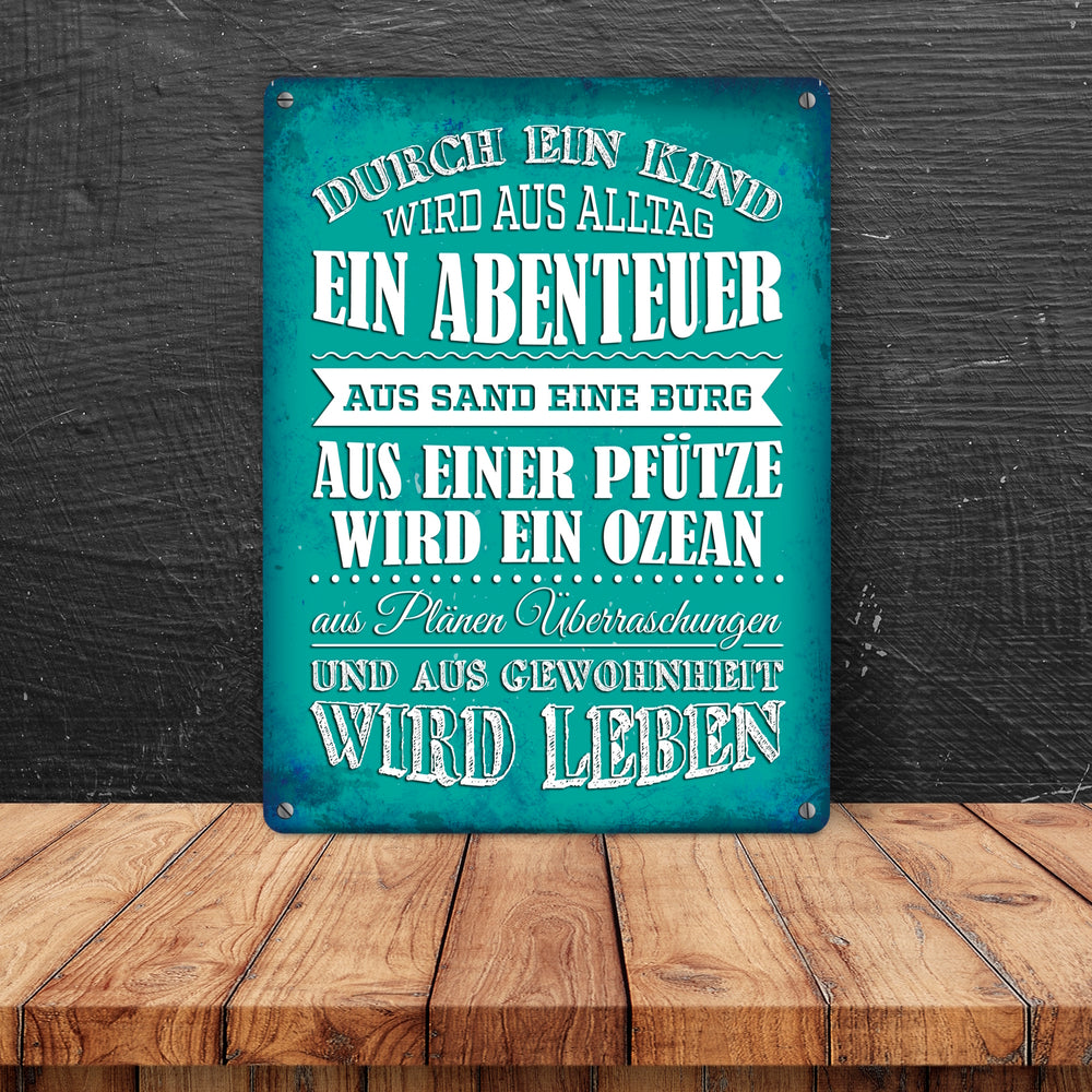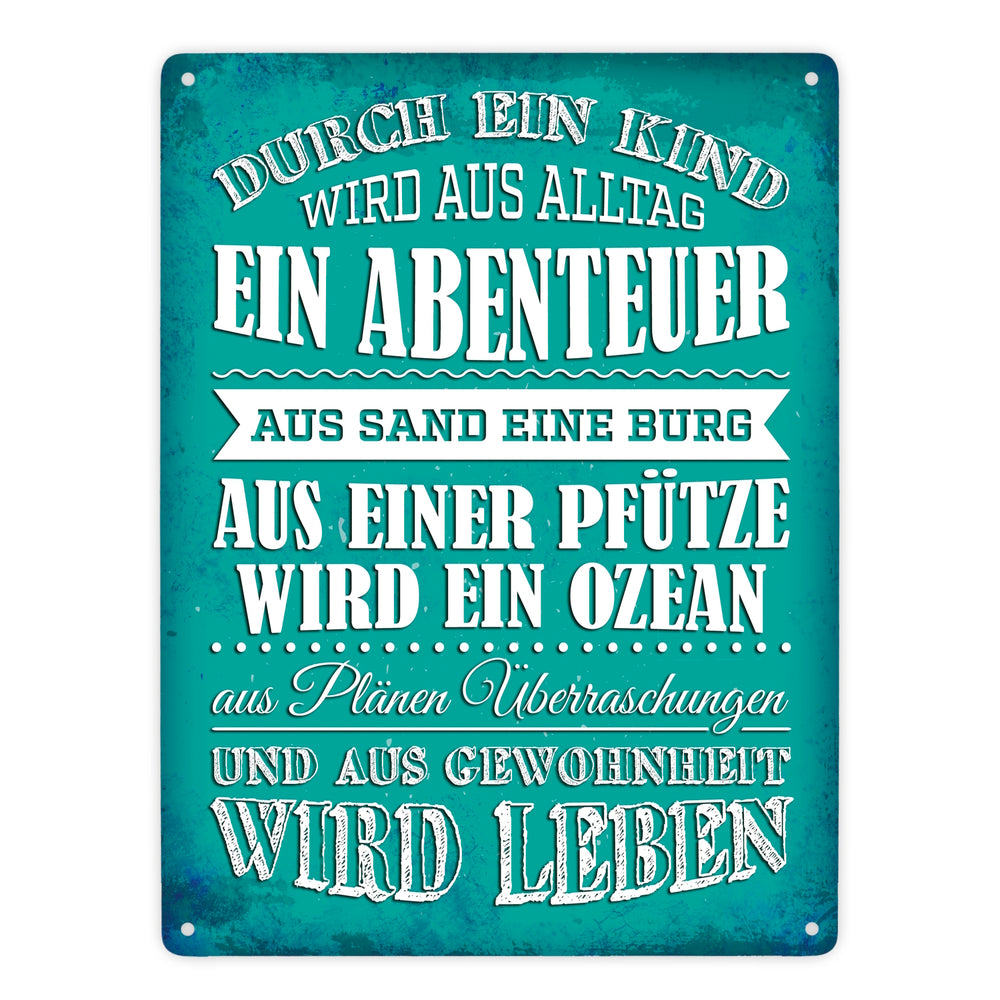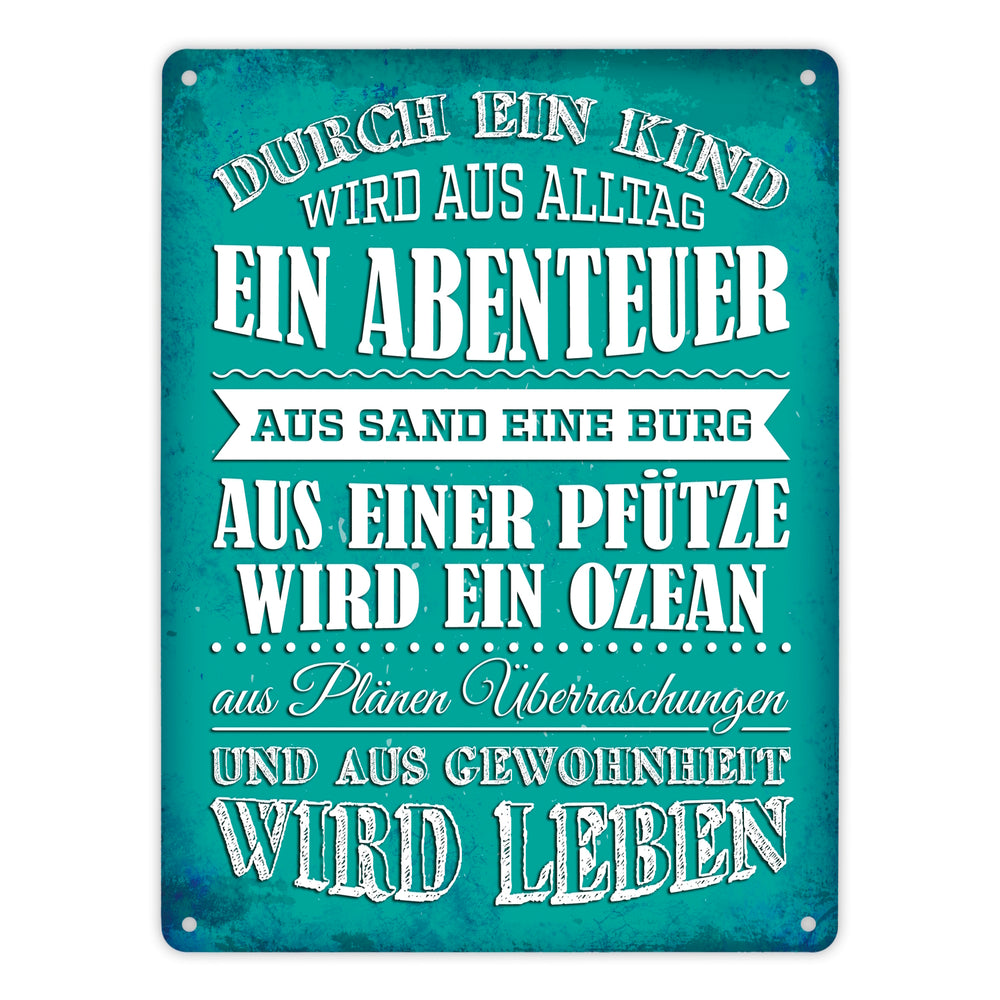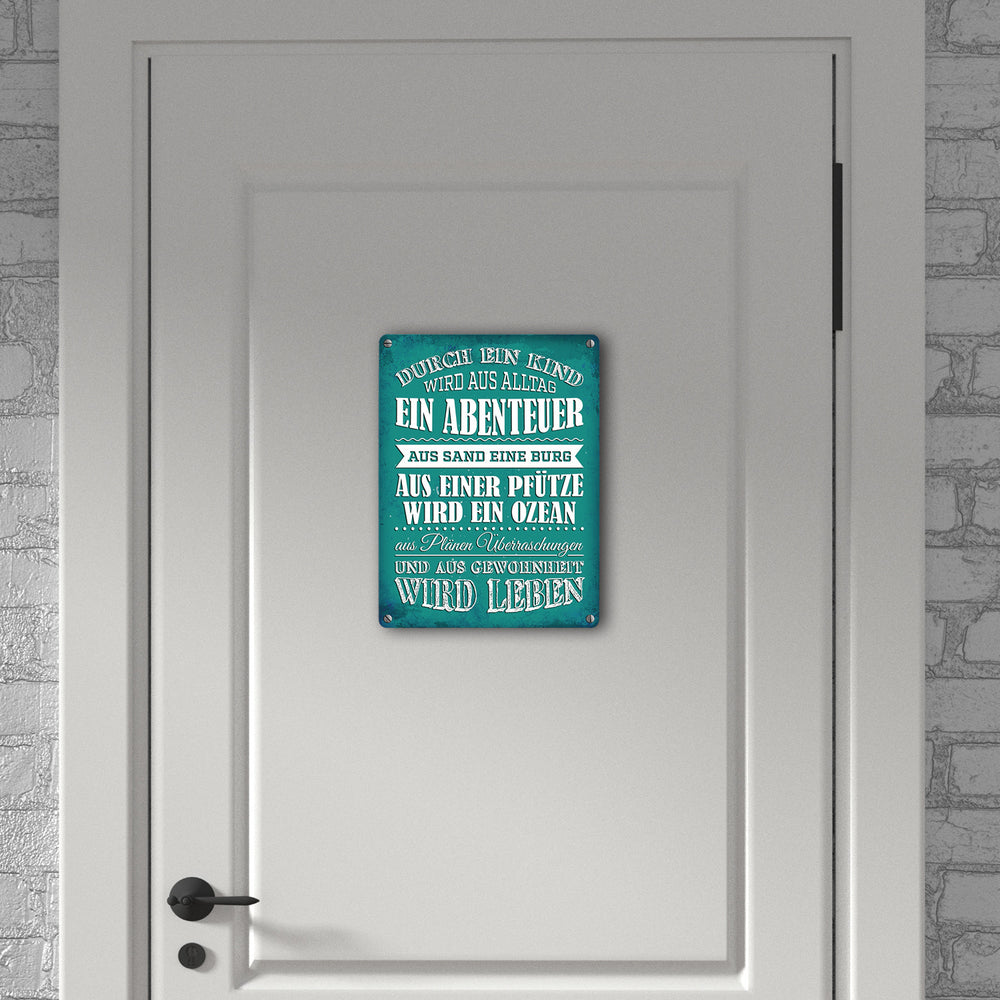• 1x Metallschild mit Spruch: Durch ein Kind wir aus Alltag ... in der gewählten Größe