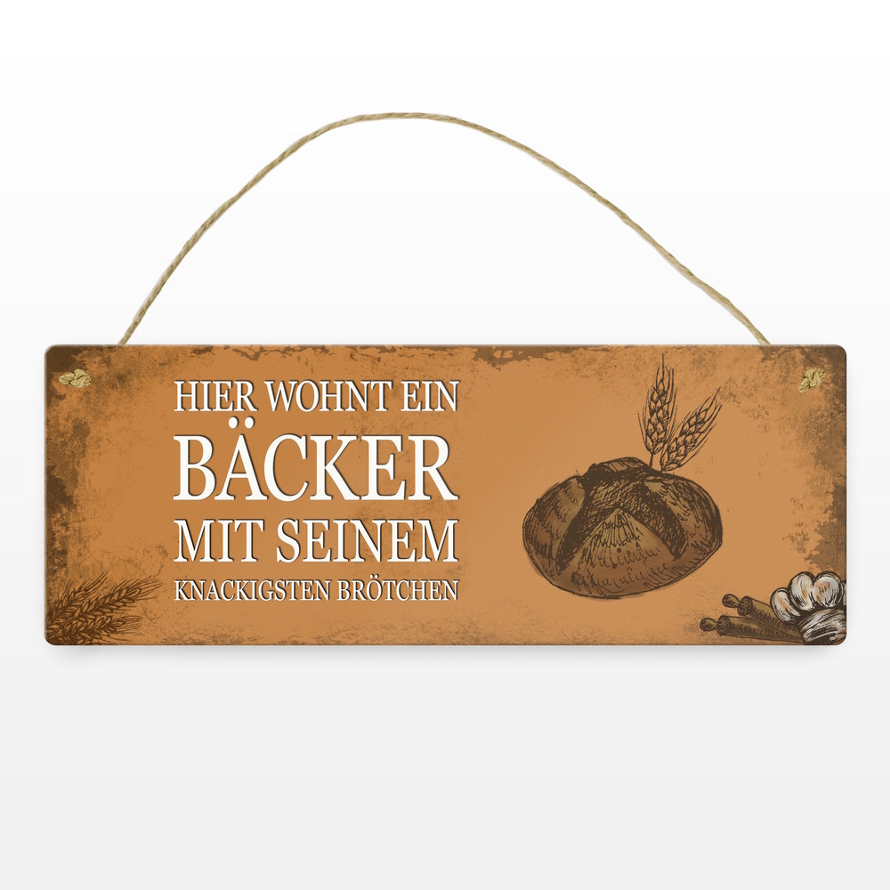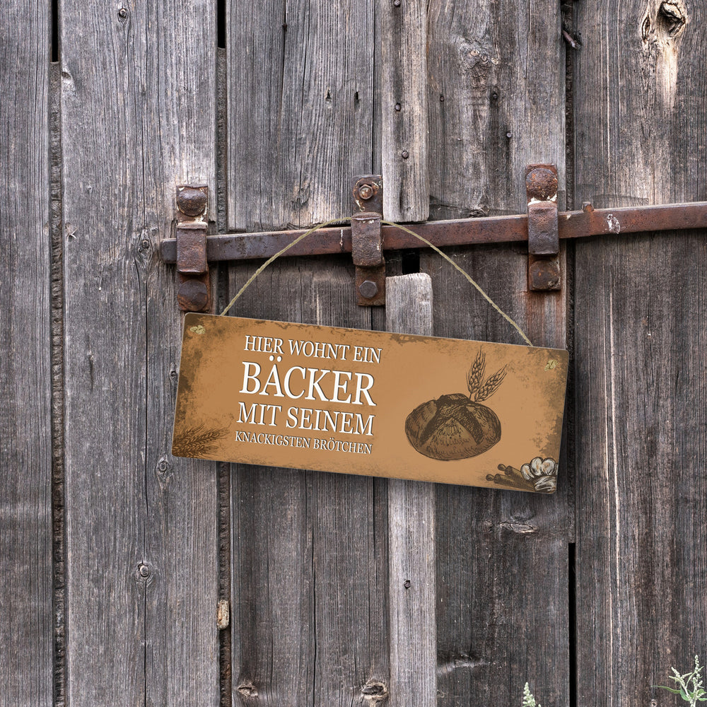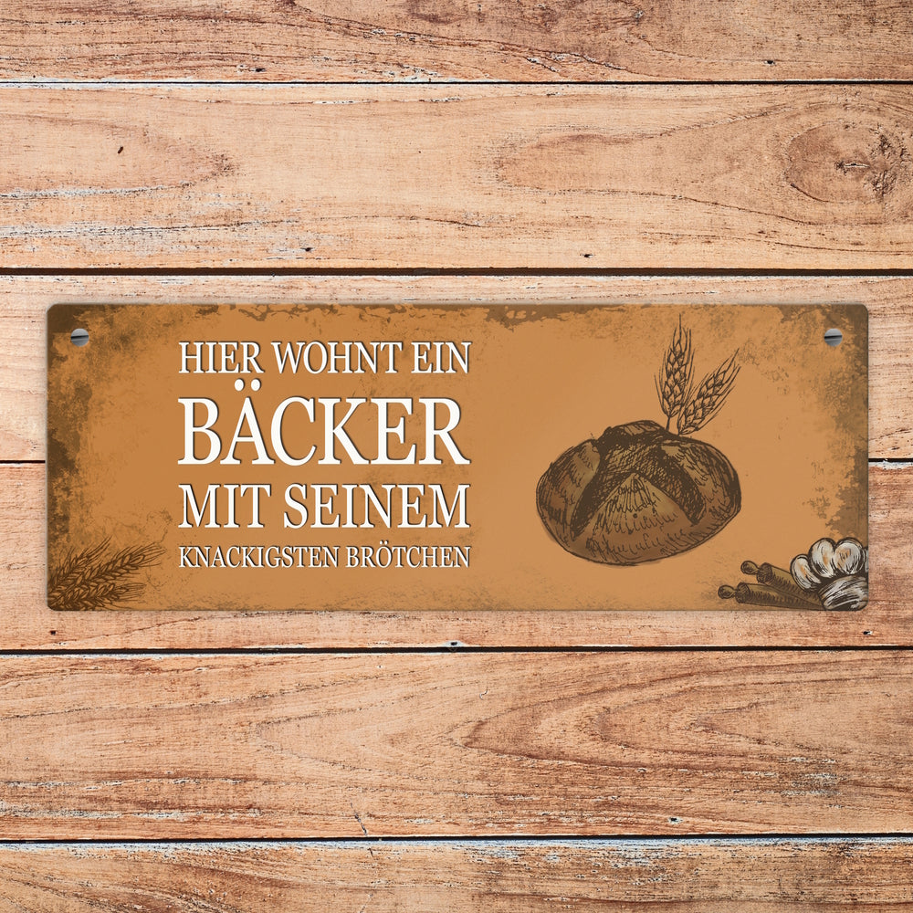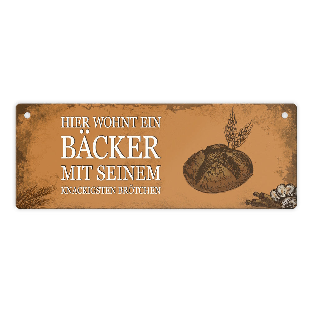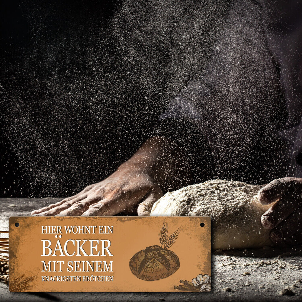 - 1x Metallschild mit Spruch: Hier wohnt ein Bäcker - mit seinem ... in der gewählten Größe