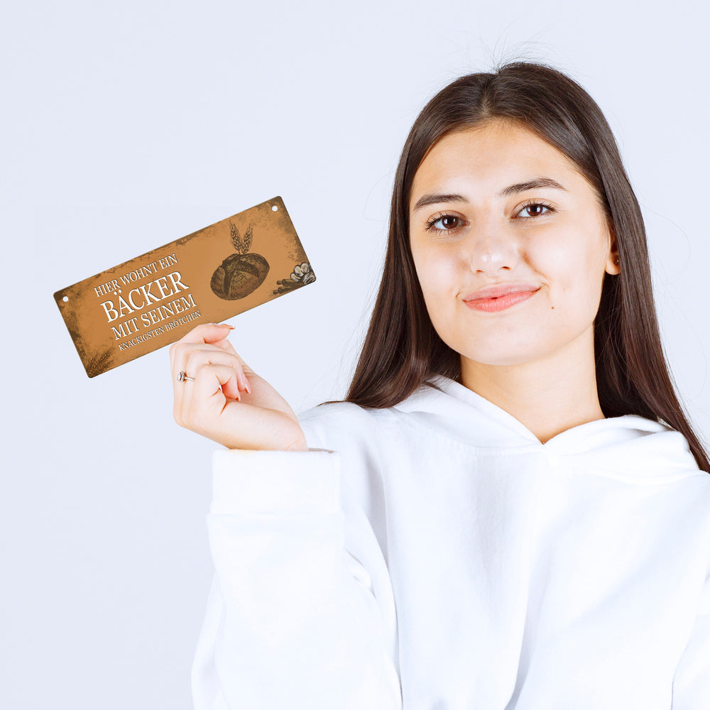 Metallschild mit Spruch: Hier wohnt ein Bäcker - mit seinem ...