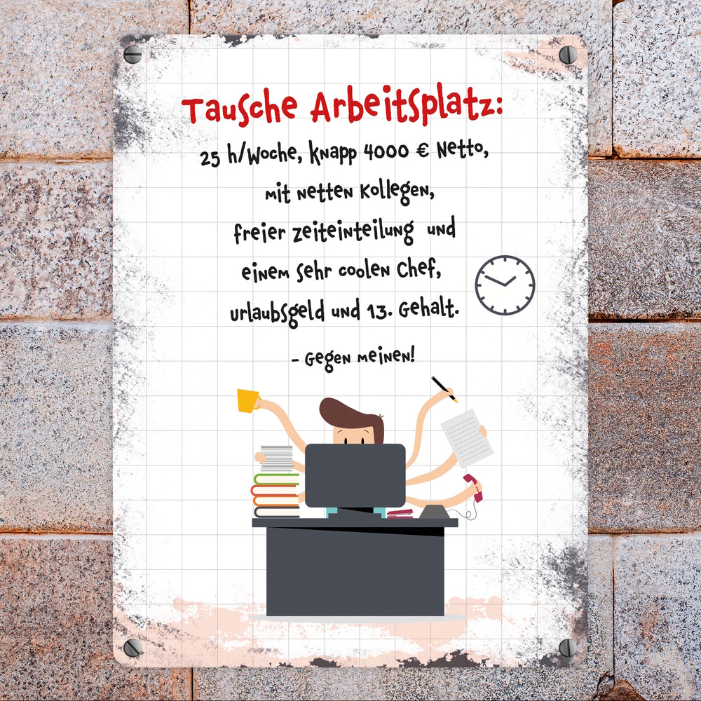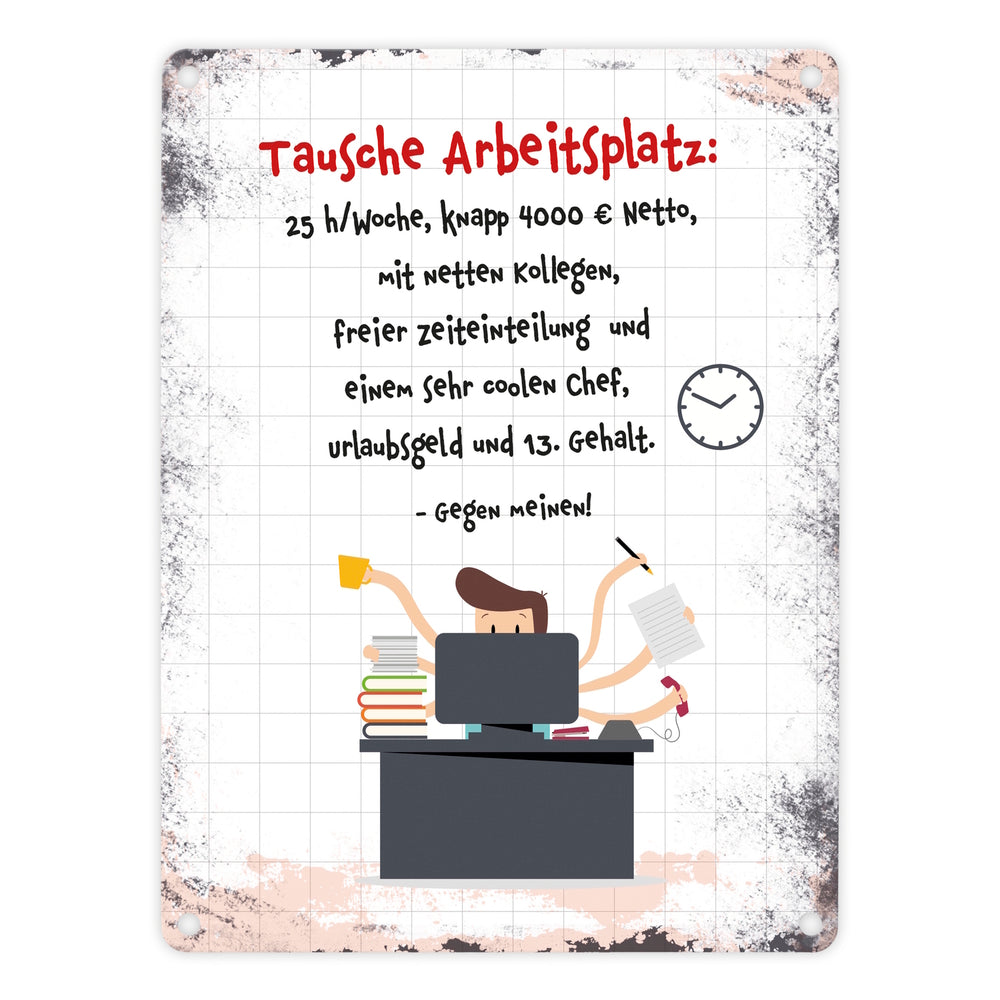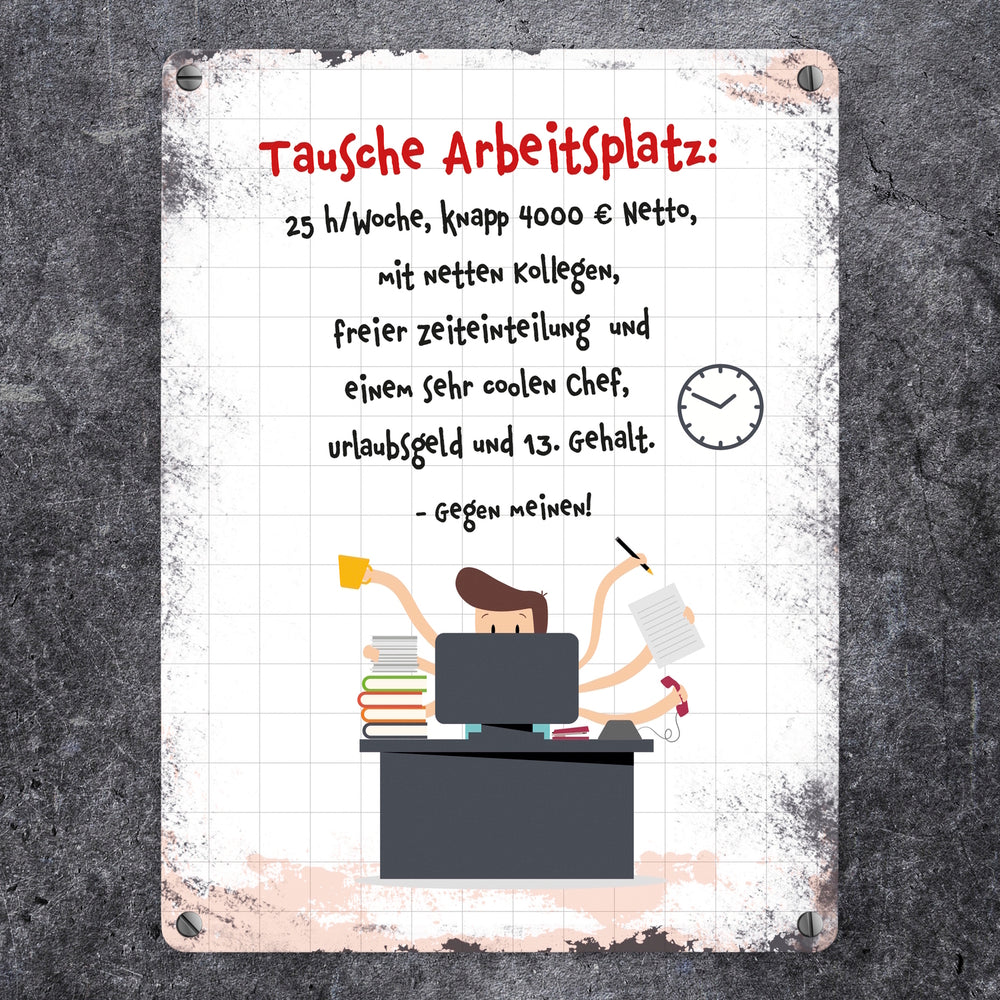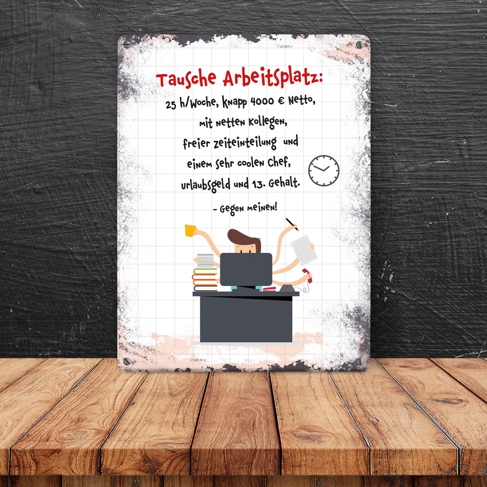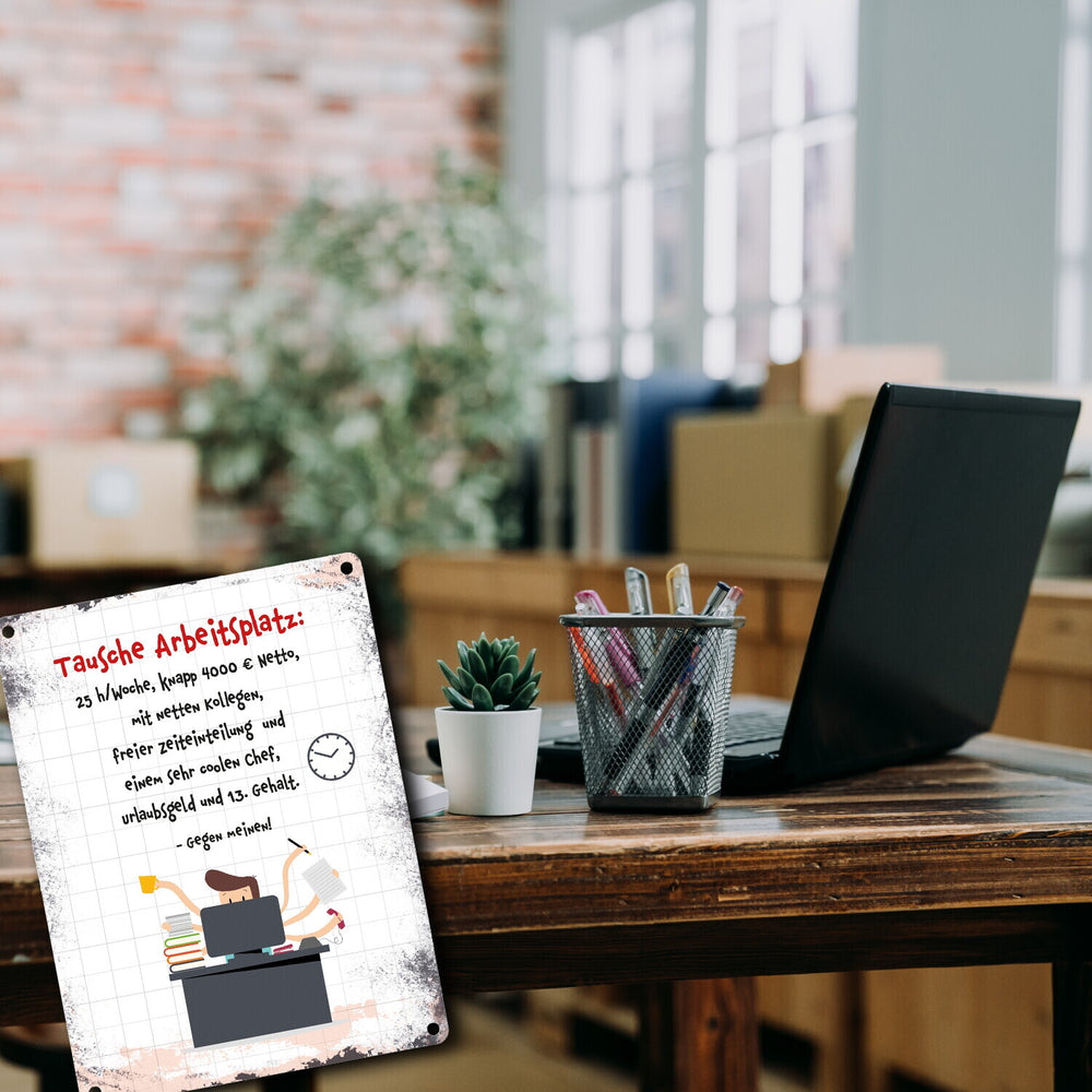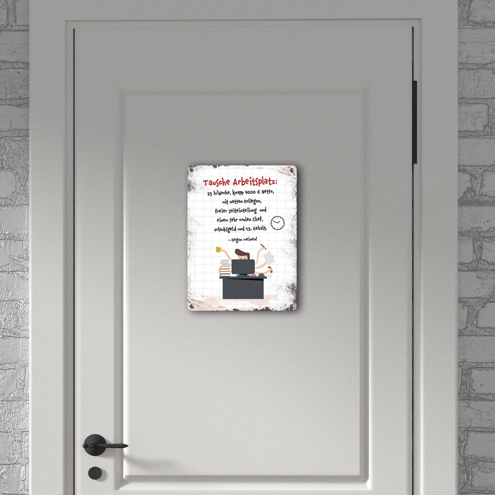 - 1x Metallschild mit Spruch: Tausche Arbeitsplatz in der gewählten Größe