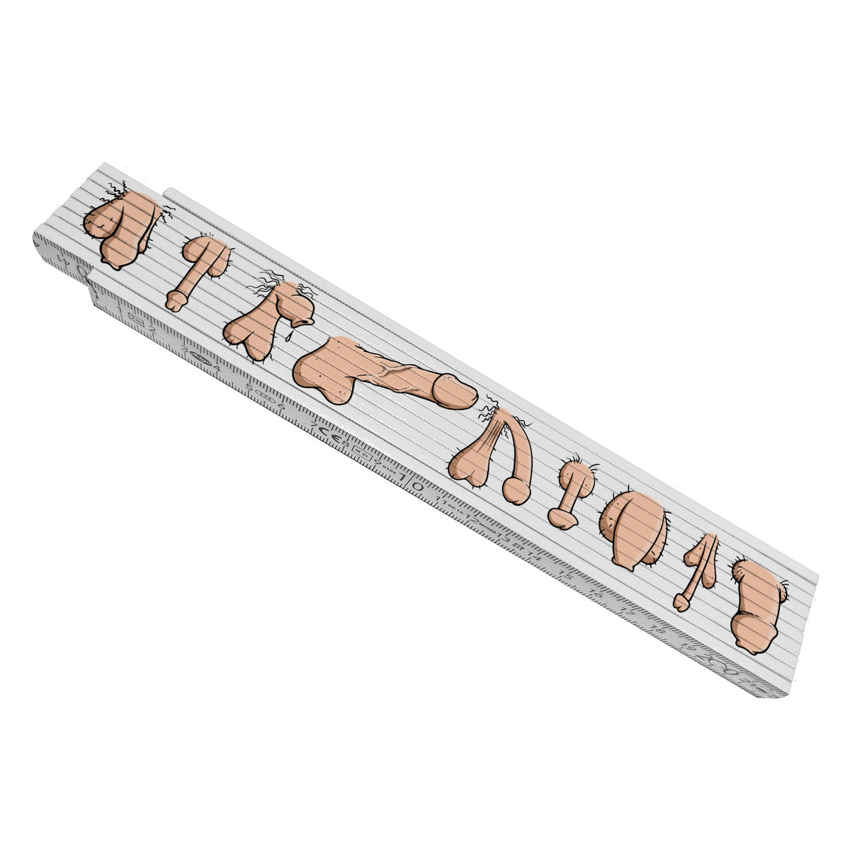 - Lieferumfang: 1x Meterstab aus Holz mit Penis Motiv - Verschiedene Glieder im bekannten Comic Stil