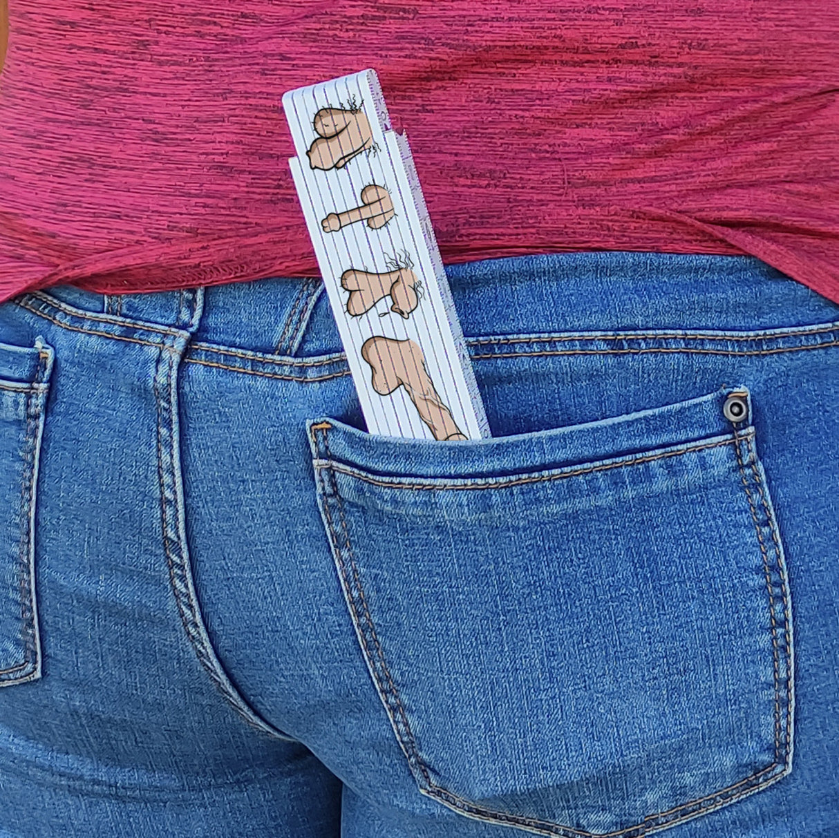 Meterstab aus Holz mit Penis Motiv - Verschiedene Glieder im bekannten Comic Stil - farbig ist auf Lager und wird versandt, sobald es wieder verfügbar ist
