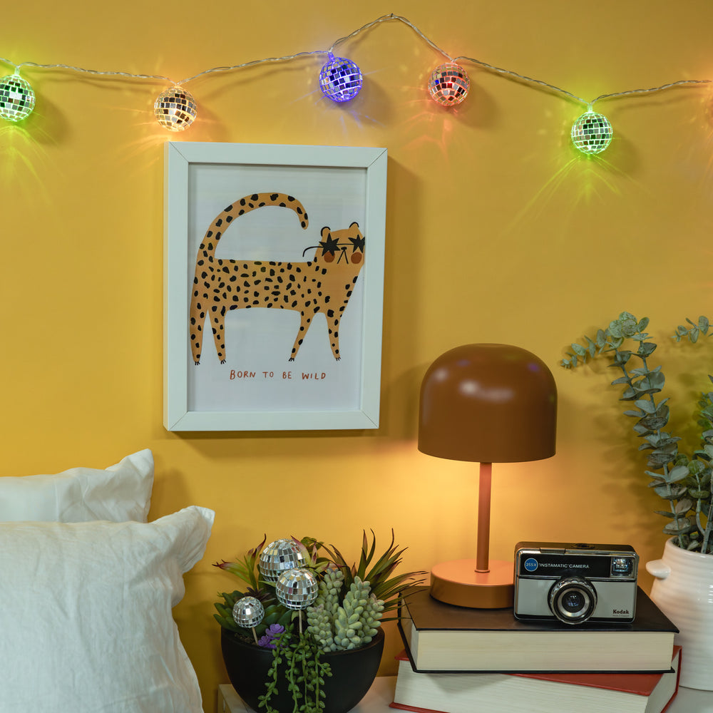 Verwandle jeden Raum in eine Disco mit unserer Mini-Discokugel-Lichterkette! Bunte LED-Lichter, batteriebetrieben und einfach zu installieren. Perfekt für Partys oder einfach gute Laune! Material: Kunststoff | Zum Betrieb werden 2 x Mignon Batterien (AA), benötigt. Diese sind nicht im Lieferumfang enthalten. Nur für den Innenbereich geeignet.
