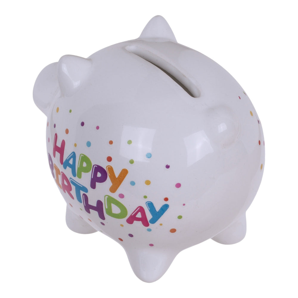 Mini Happy Birthday Sparschwein - Geburtstags Spardose aus Keramik
