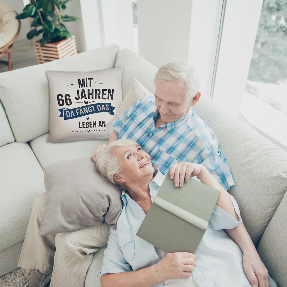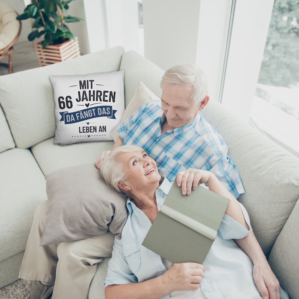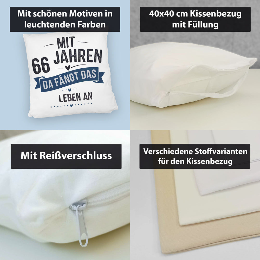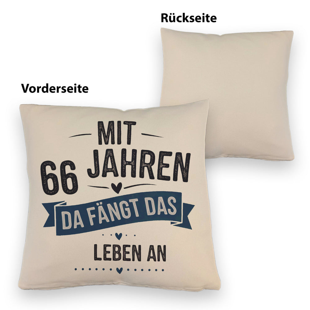 - 1x MIT 66 JAHREN DA FÄNGT DAS LEBEN AN Kissen in der gewählten Ausführung