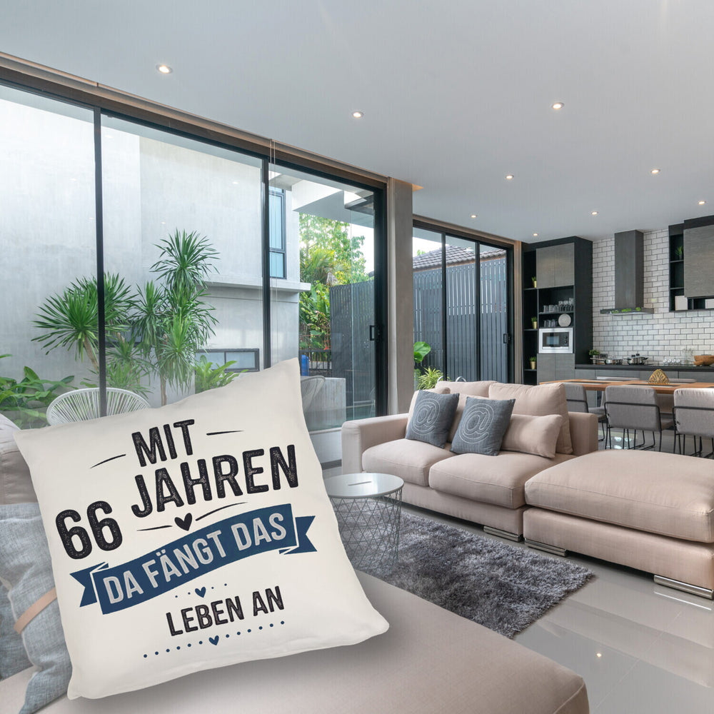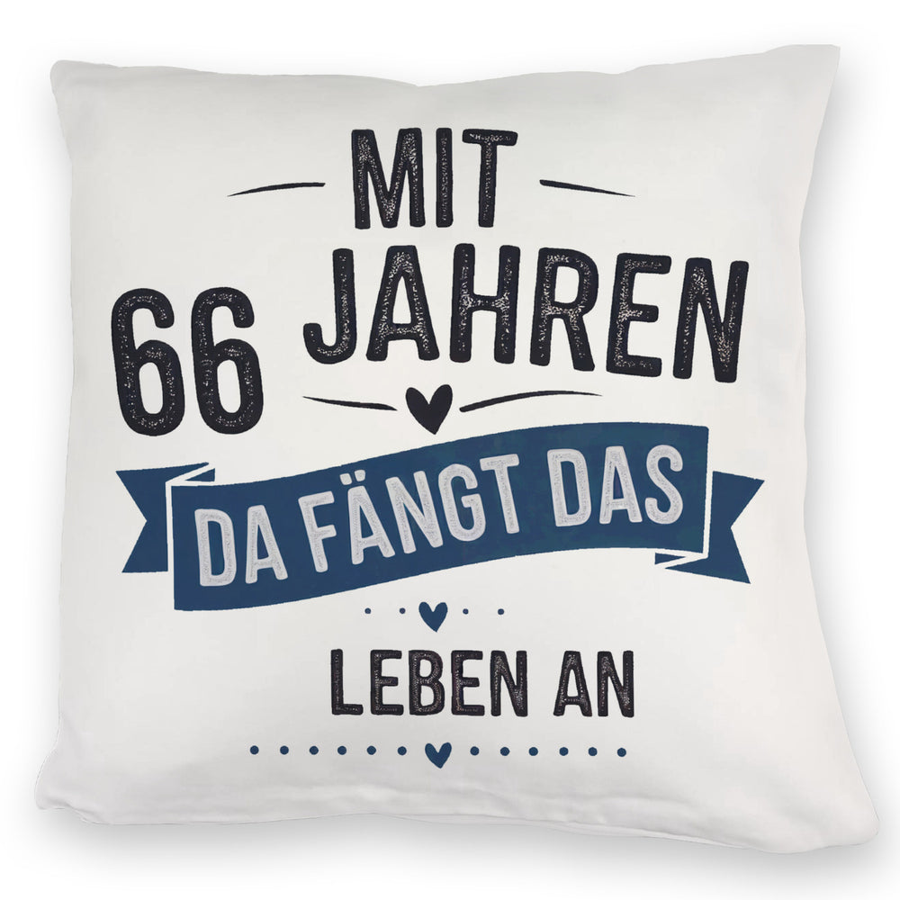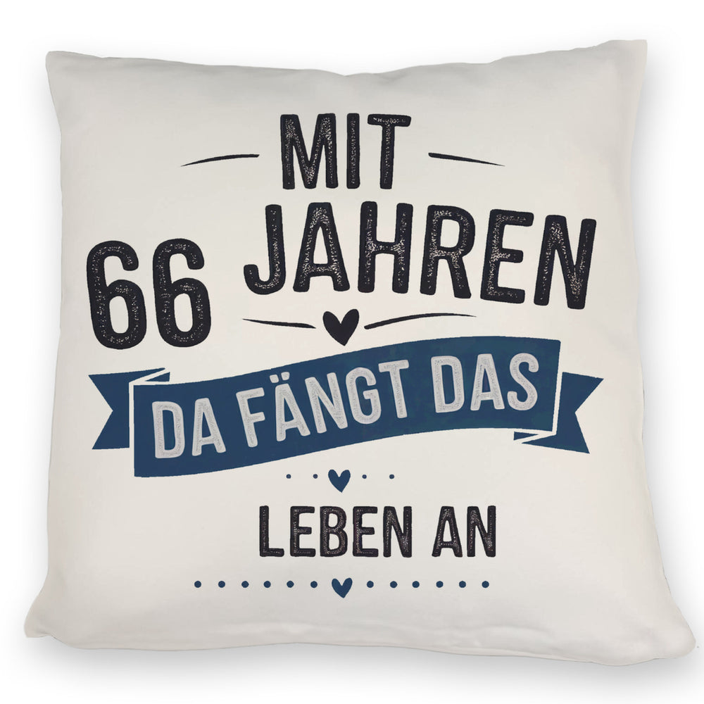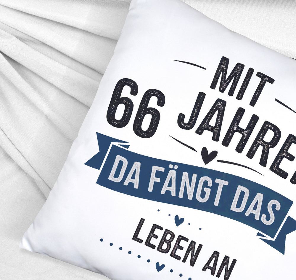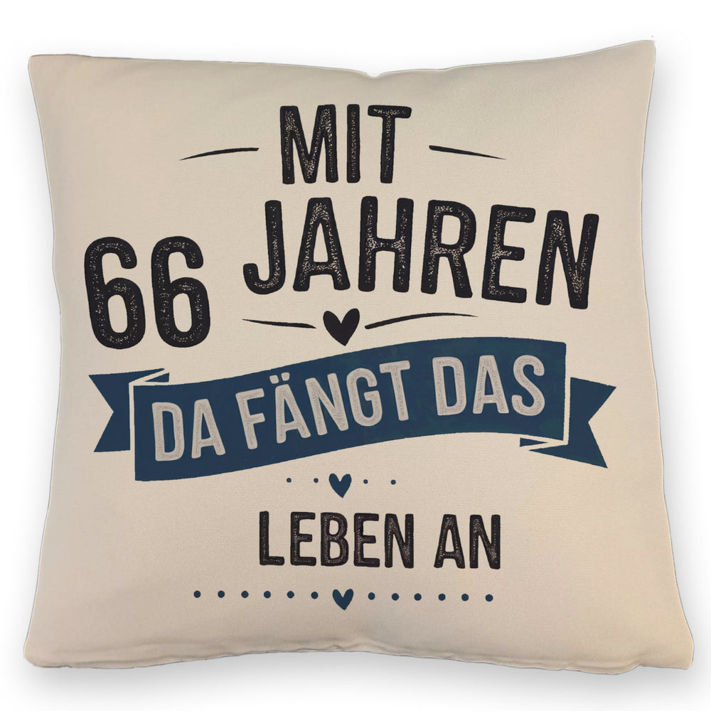- 1x MIT 66 JAHREN DA FÄNGT DAS LEBEN AN Kissen in der gewählten Ausführung
