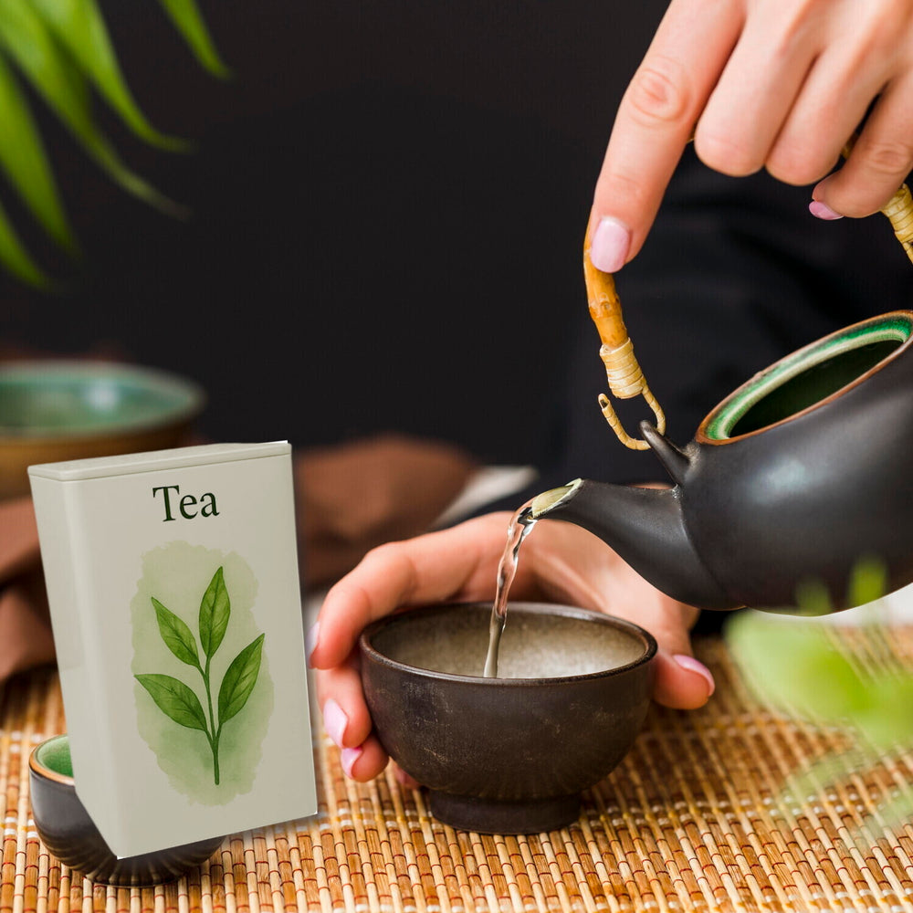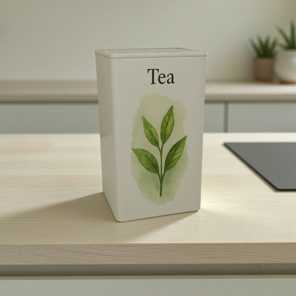 - Diese charmante Metalldose zeigt ein wunderschönes Aquarellmotiv mit grünen Teeblättern auf einem hellgrünen Hintergrund. Der stilvolle Schriftzug "Tea" verleiht ihr einen besonderen Touch. Mit einem Fassungsvermögen von 900 ml ist sie perfekt für Teeliebhaber, die ihren Morgen mit einem Lächeln beginnen möchten.