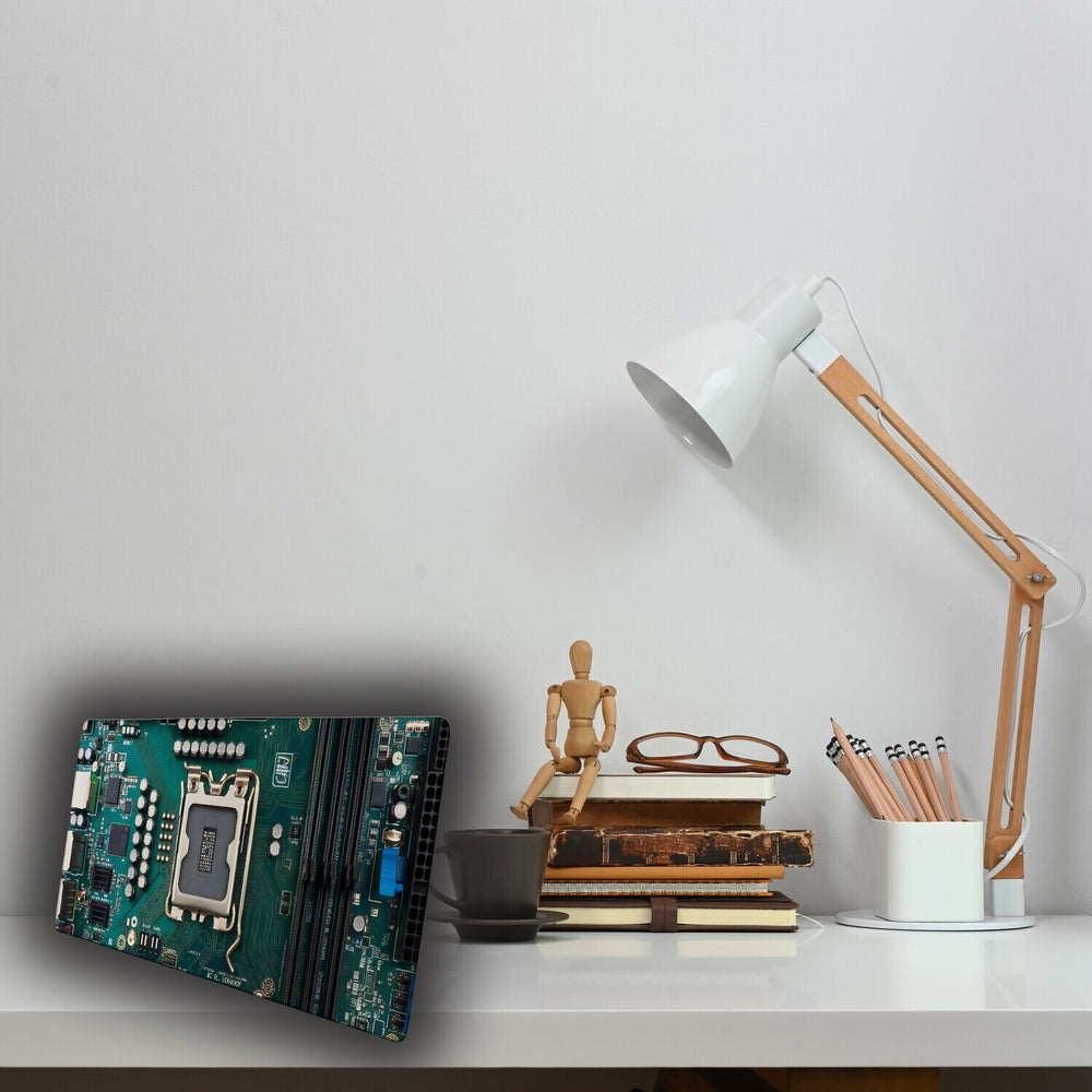 - Ob als Statement für Ihren Schreibtisch oder als Geschenk für den Lieblings-Nerd, diese Schreibtischunterlage ist genau das Richtige! Verwandeln Sie Ihren Arbeitsplatz in einen stylischen Tech-Tempel und zeigen Sie der Welt, dass Ihr Herz für Motherboards schlägt.