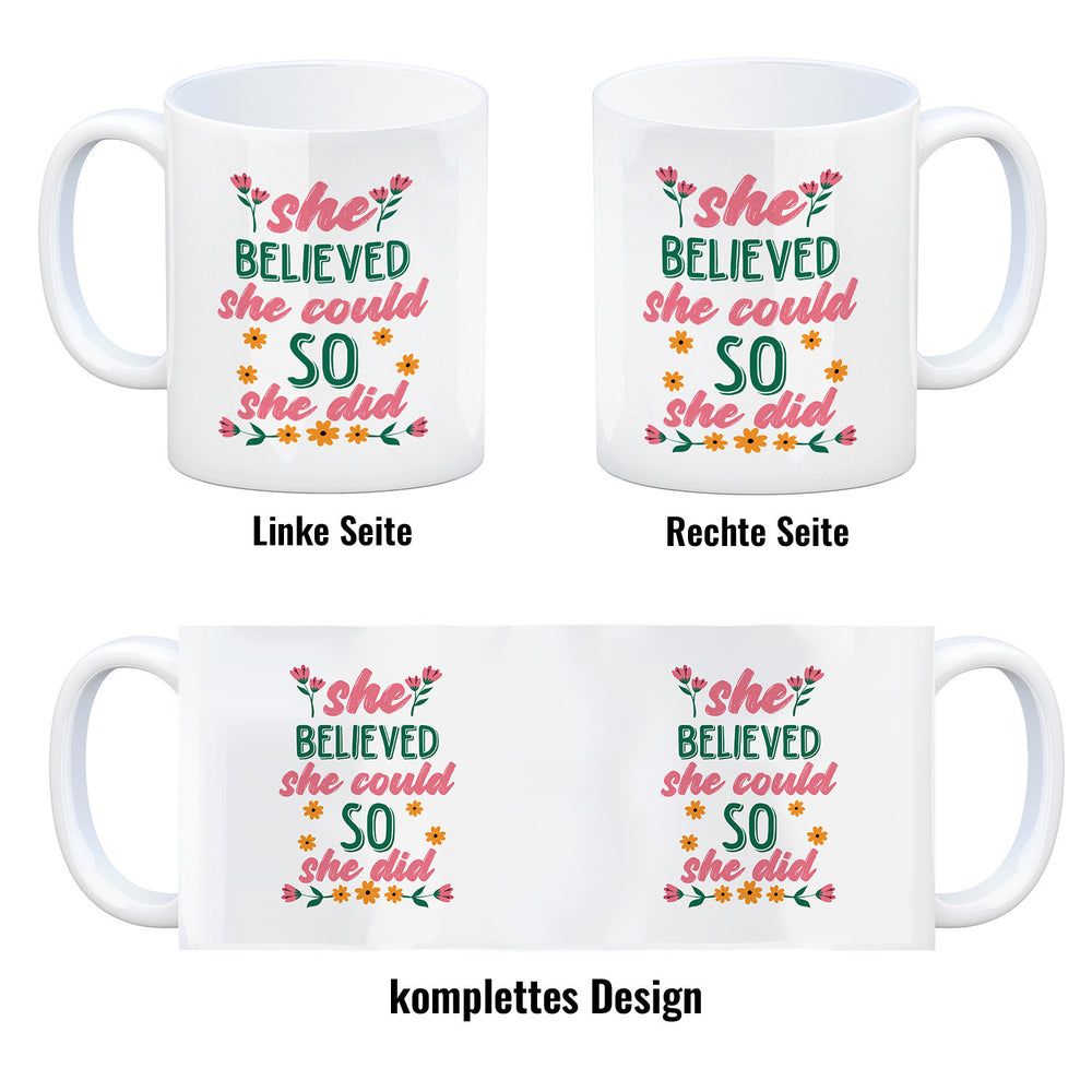 Motivation Kaffeebecher mit Spruch She believed she could so she did