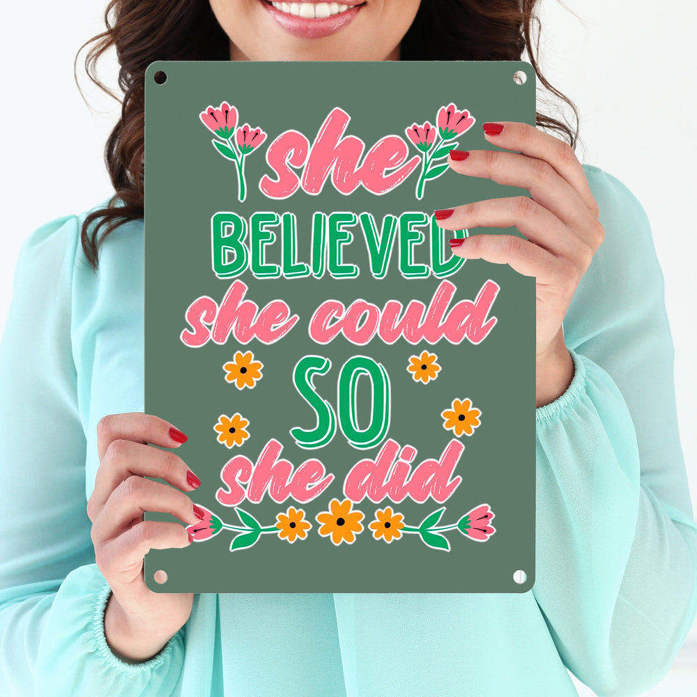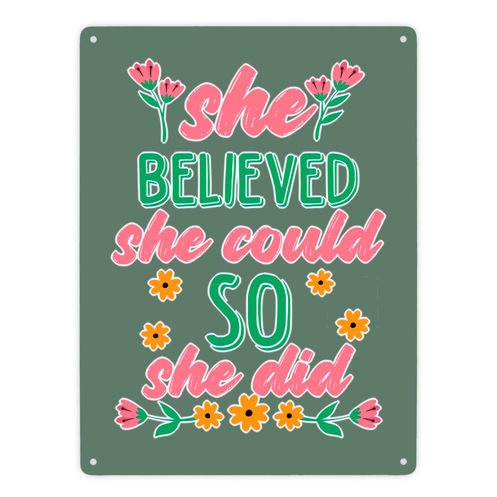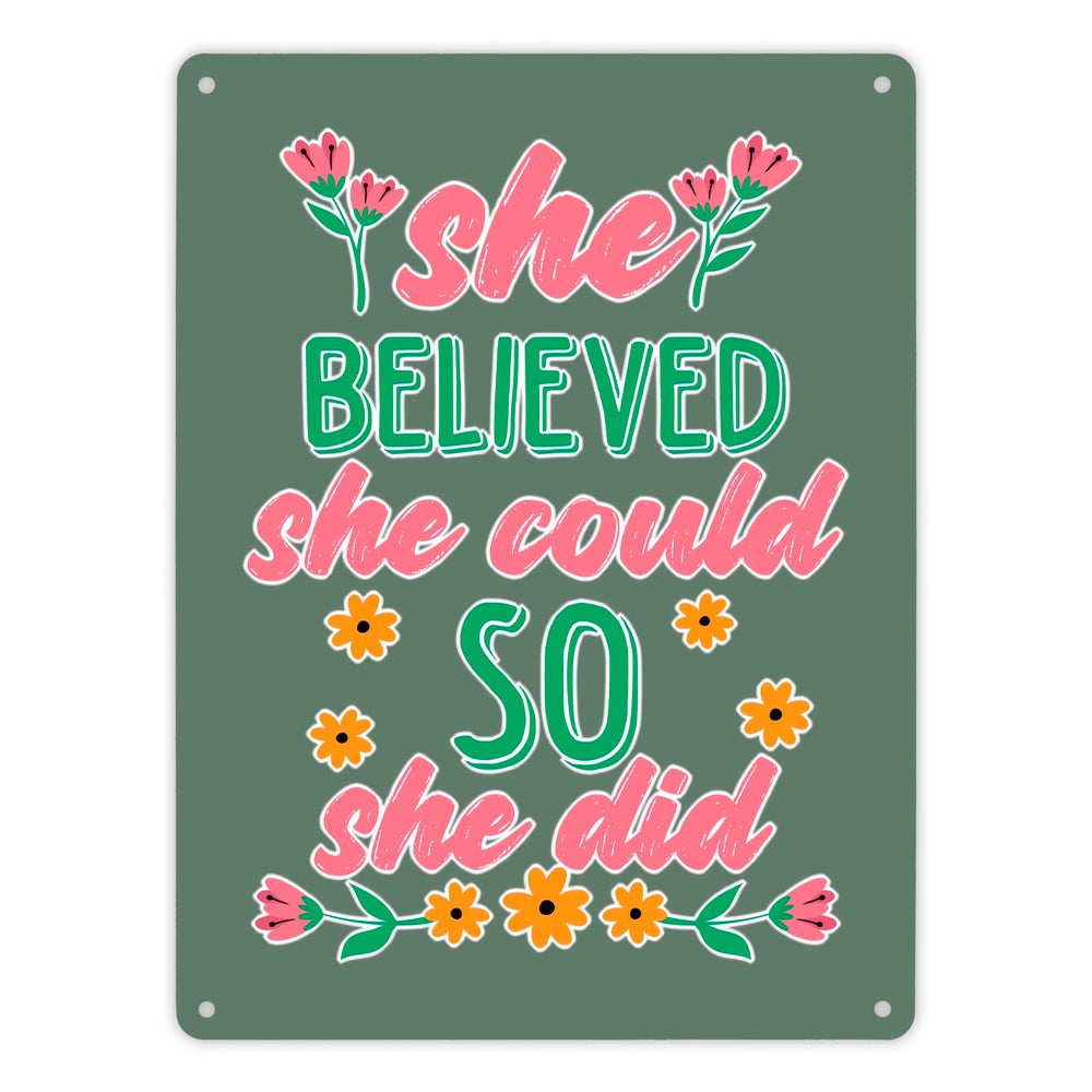 Motivation Metallschild in 15x20 cm mit Spruch She believed she could so she did