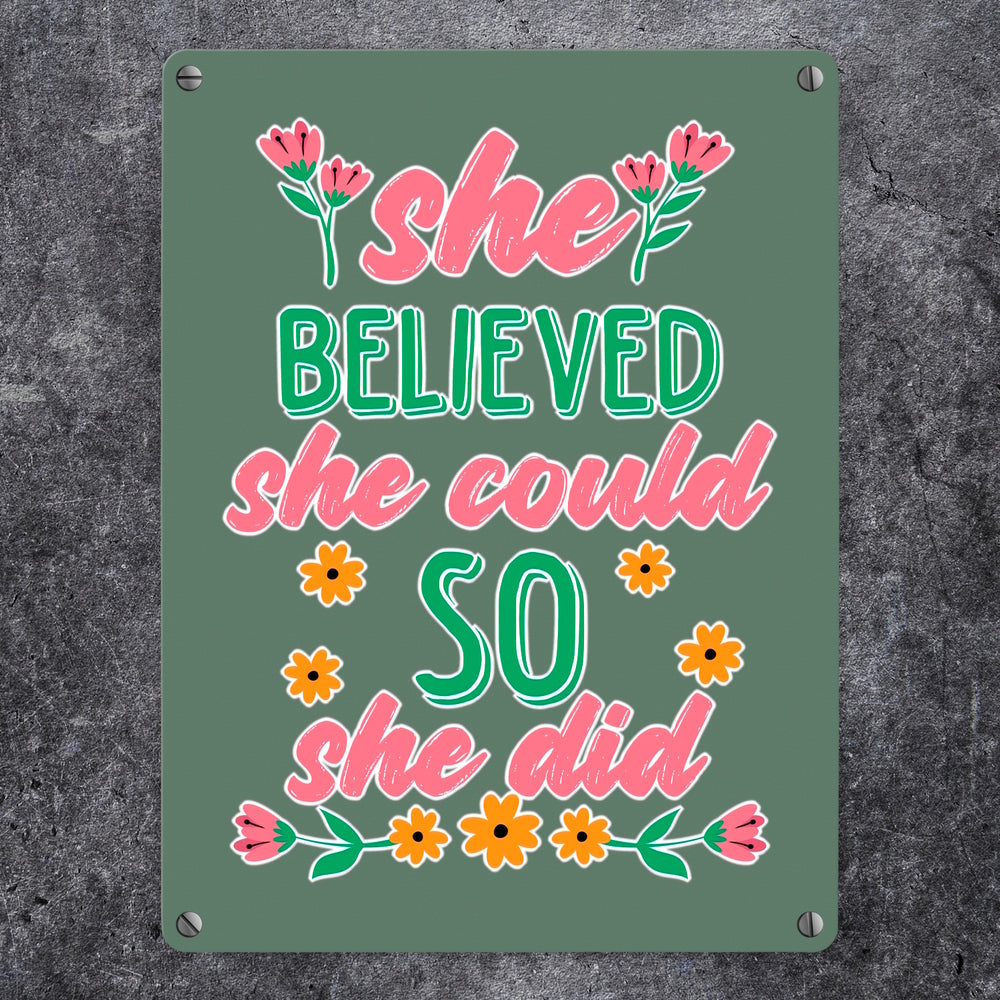 Motivation Metallschild in 15x20 cm mit Spruch She believed she could so she did - 15x20 cm ist auf Lager und wird versandt, sobald es wieder verfügbar ist