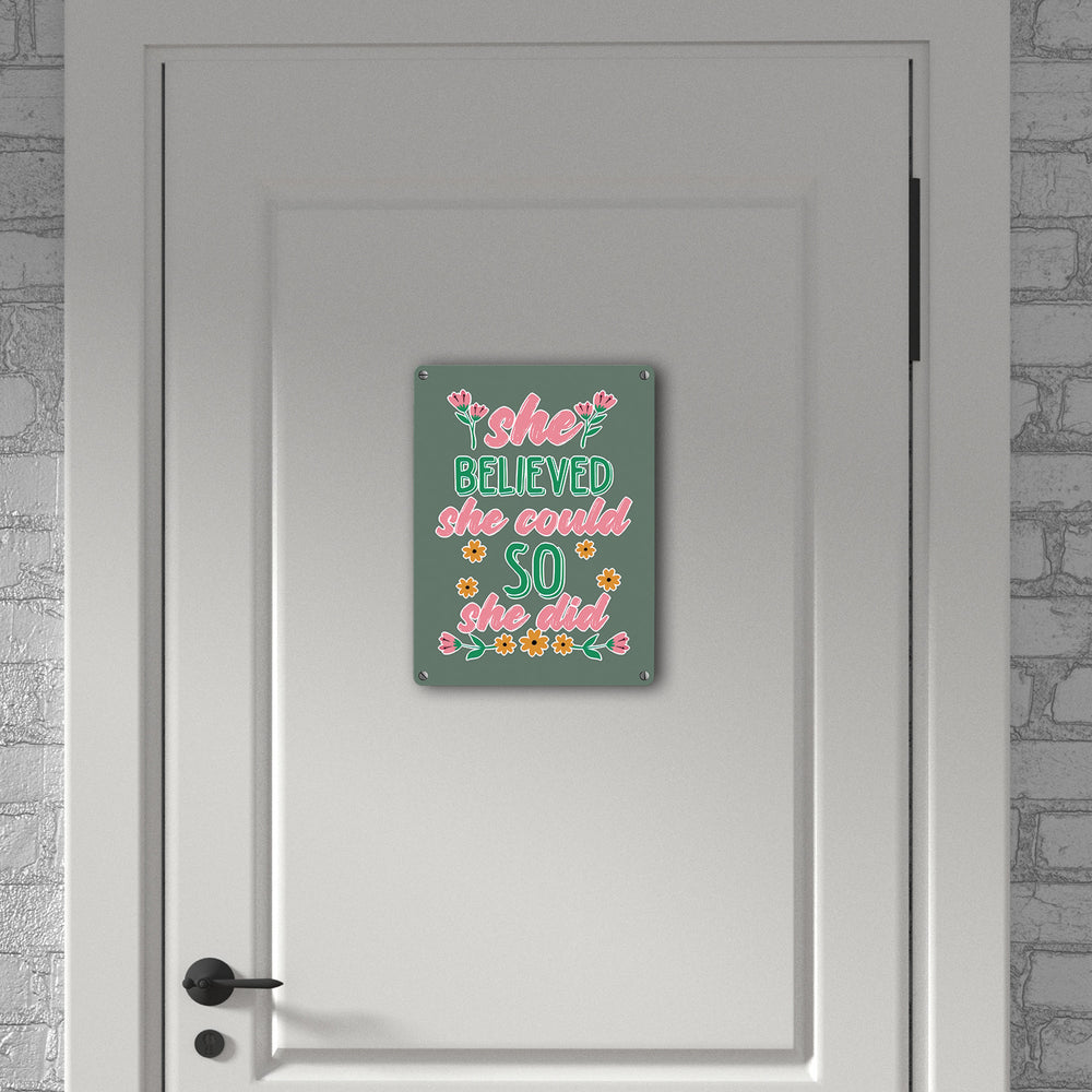 - 1x Motivation Metallschild in 15x20 cm mit Spruch She believed she could so she did in der gewählten Größe