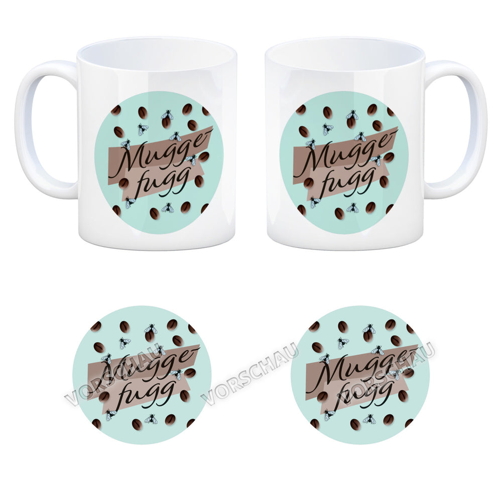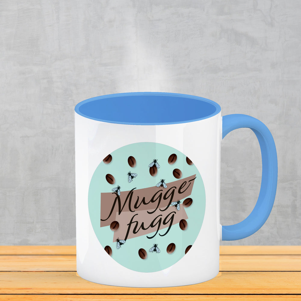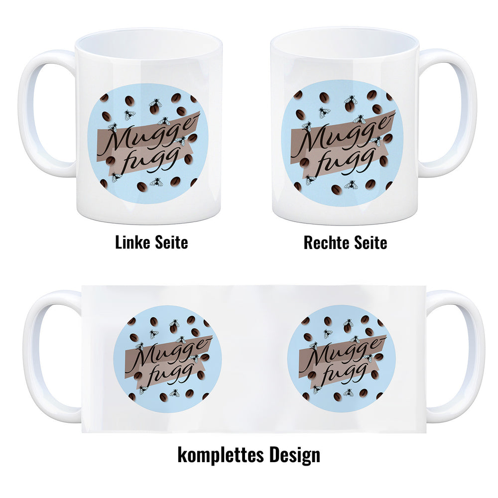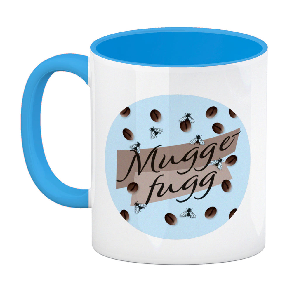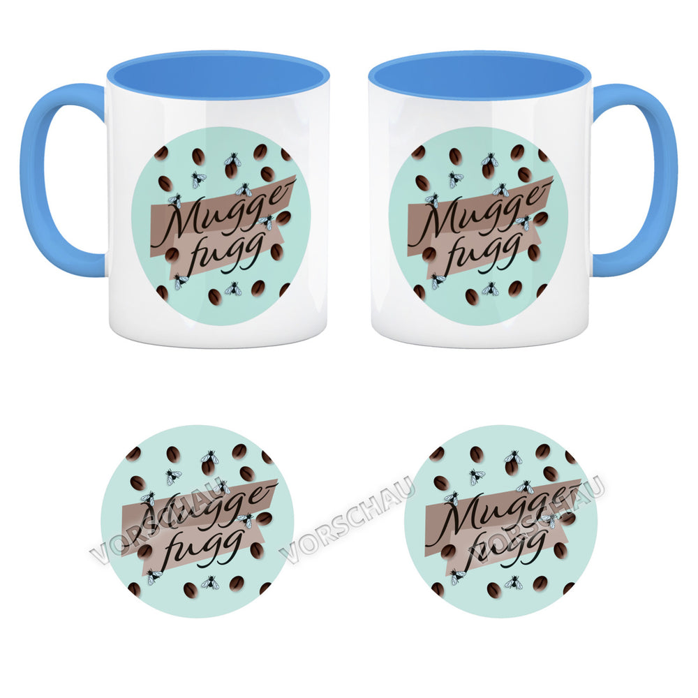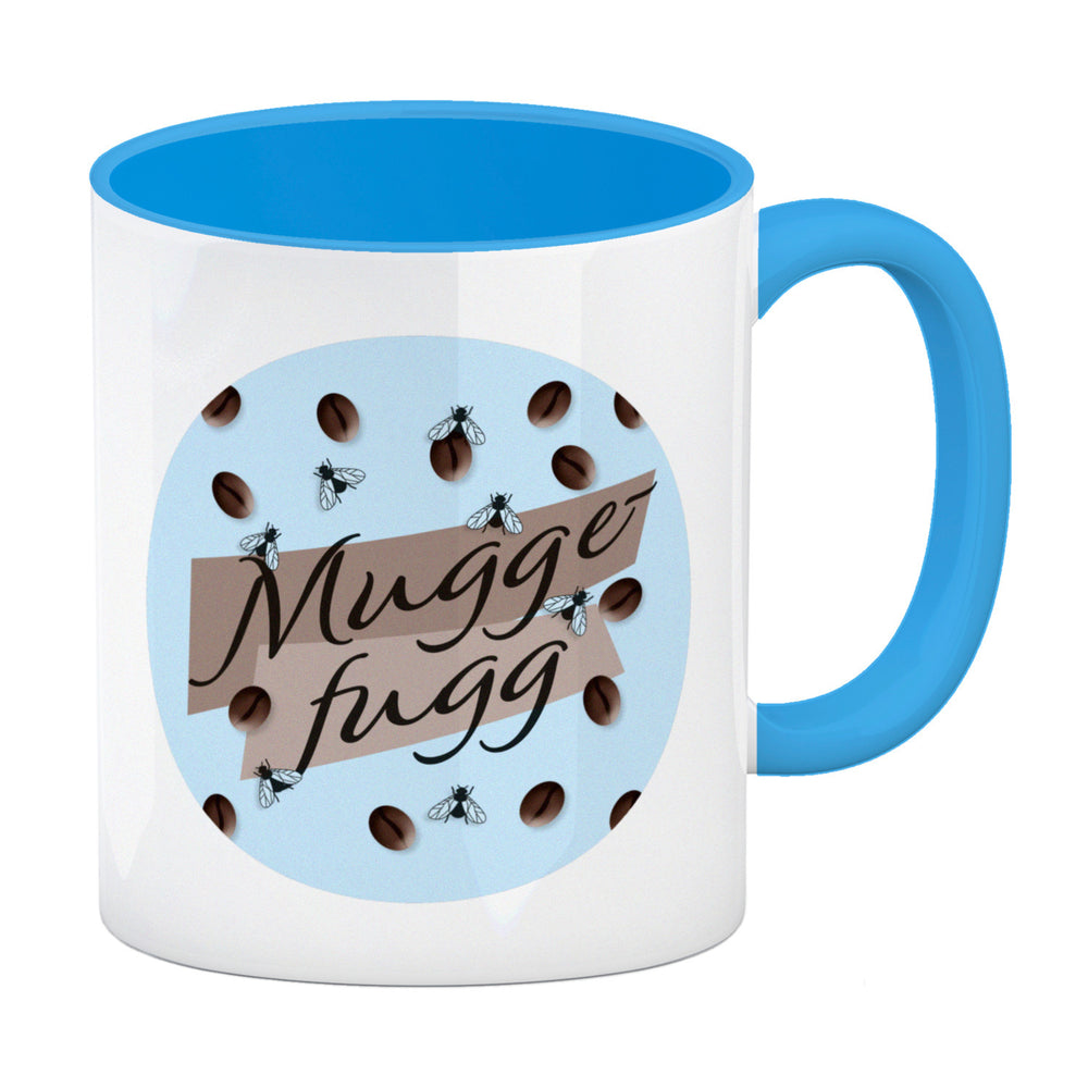 - 1x Muggefugg Malzkaffee Kaffeebecher mit Kaffeebohnen und Fliegen blau in der gewählten Ausführung