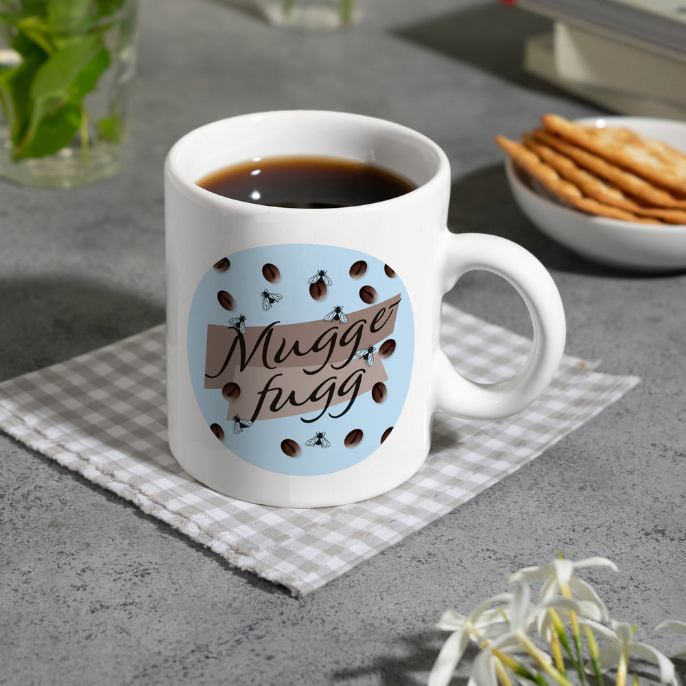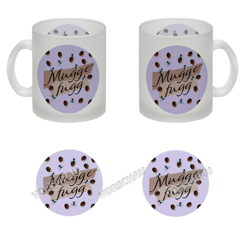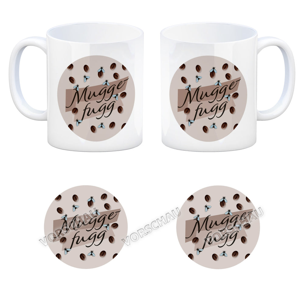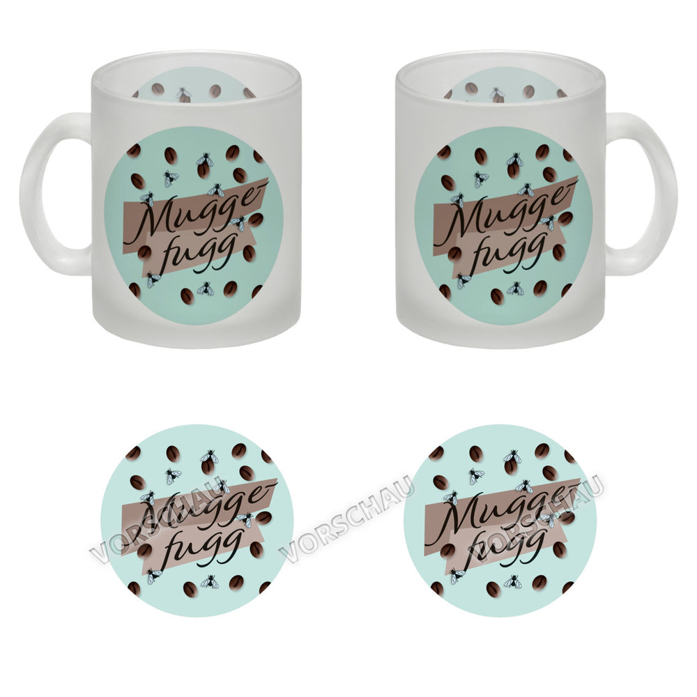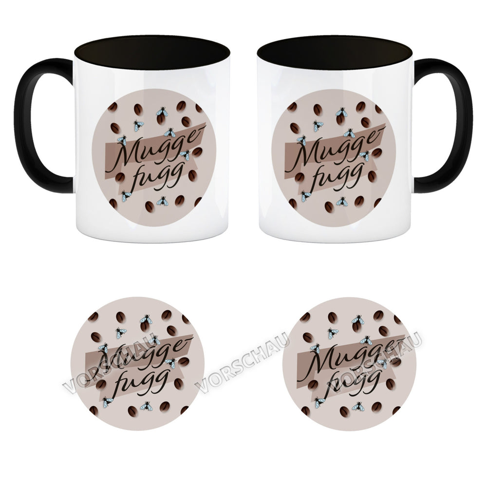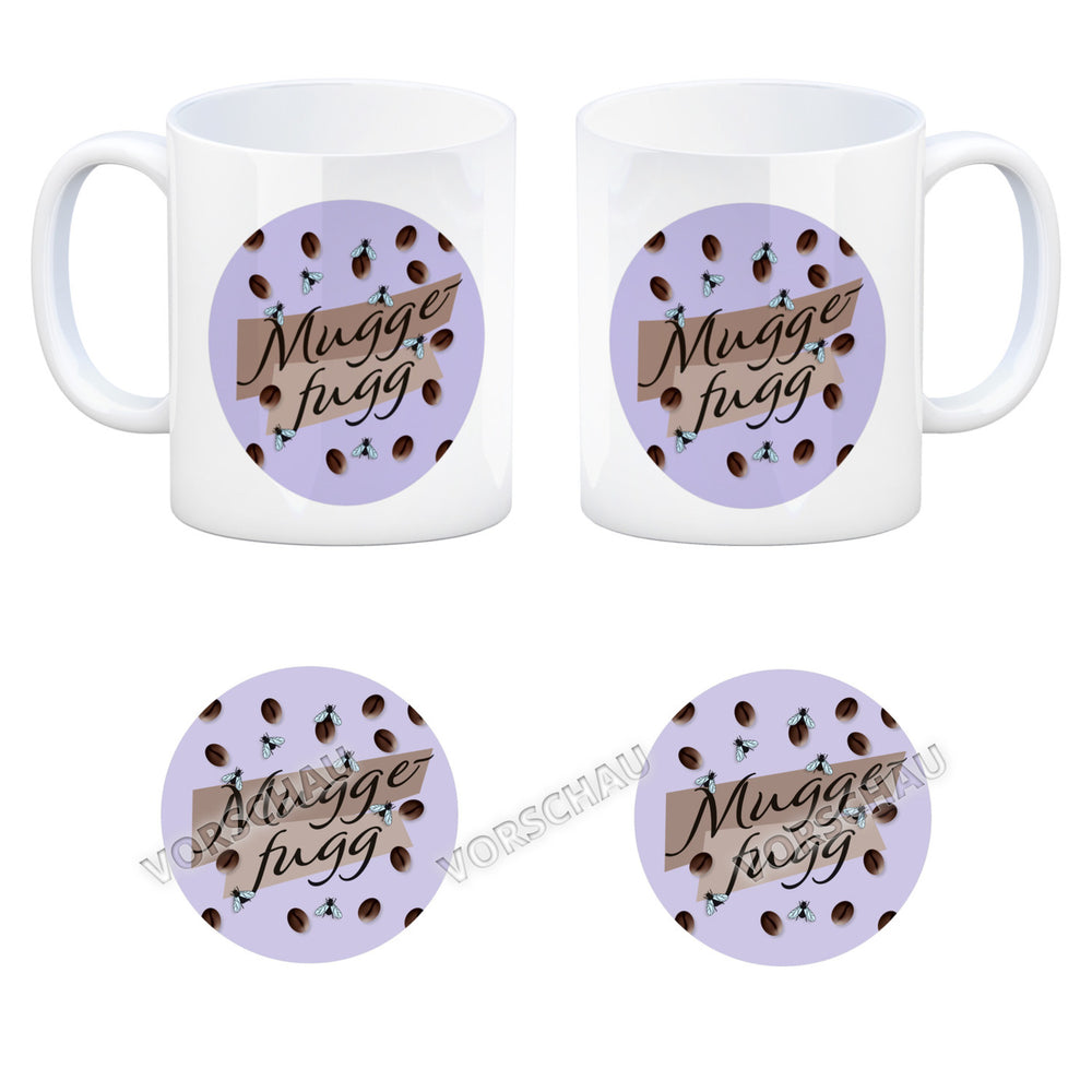- 1x Muggefugg Malzkaffee Kaffeebecher mit Kaffeebohnen und Fliegen blau in der gewählten Ausführung