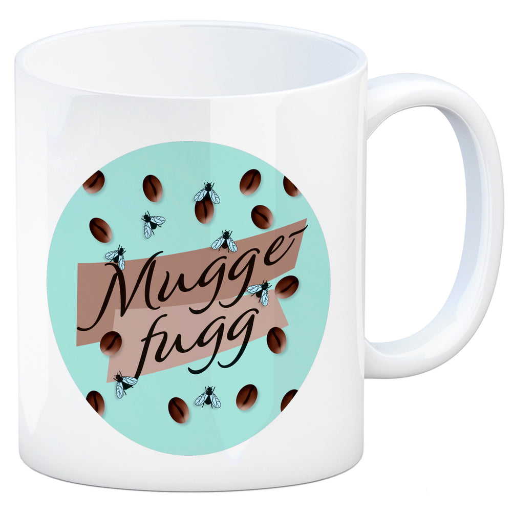 Muggefugg Malzkaffee Kaffeebecher mit Kaffeebohnen und Fliegen blau