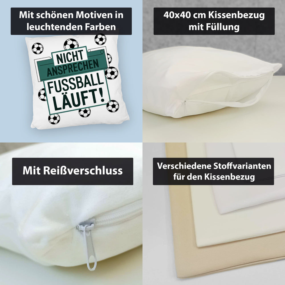 - 1x Nicht ansprechen Fußball läuft Kissen in der gewählten Ausführung
