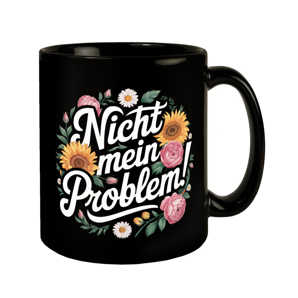 - Starten Sie jeden Morgen mit einem Augenzwinkern! Unsere "Nicht mein Problem" Blumensprache Tasse wird Ihnen helfen, die kleinen Sorgen des Alltags mit einem Lächeln zu ignorieren. Die lustige Kaffee-Tasse in Schwarz ist verspielt und erfrischend anders – der perfekte Begleiter für problemlose Tage.