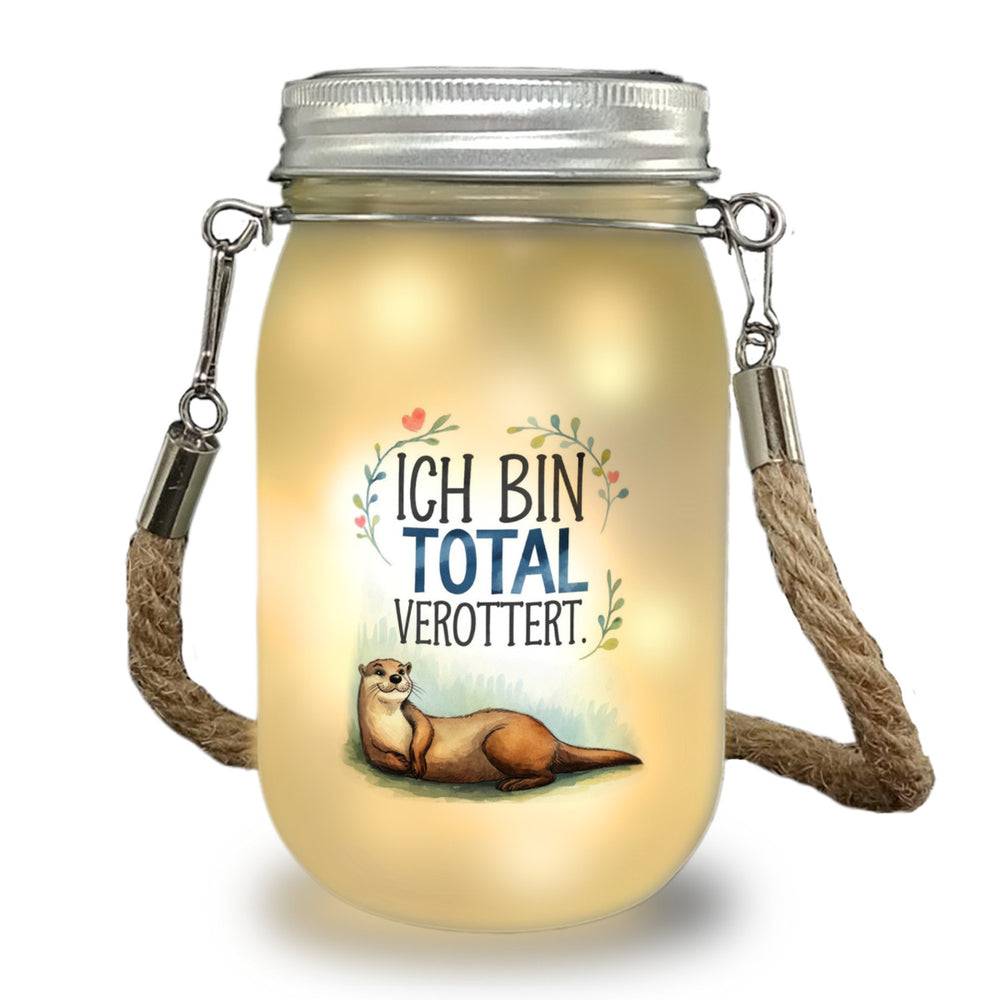 Erleben Sie das zauberhafte Otter Solarlicht! Dieser fröhliche Otter liegt entspannt auf saftigem Gras, umgeben von liebevollen Blättern und Herzchen. Der Schriftzug "Ich bin total verottert" sorgt für Schmunzeln. Die beruhigende Farbpalette aus B Hinweise: Material: Glas / Solarfunktion + Outdoor / AAA-Akku nicht im LU enthalten