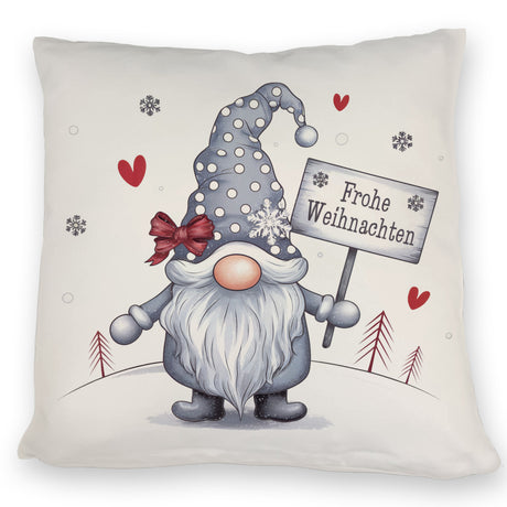 niedlicher Weihnachtswichtel mit Schild Kissen - Frohe Weihnachten