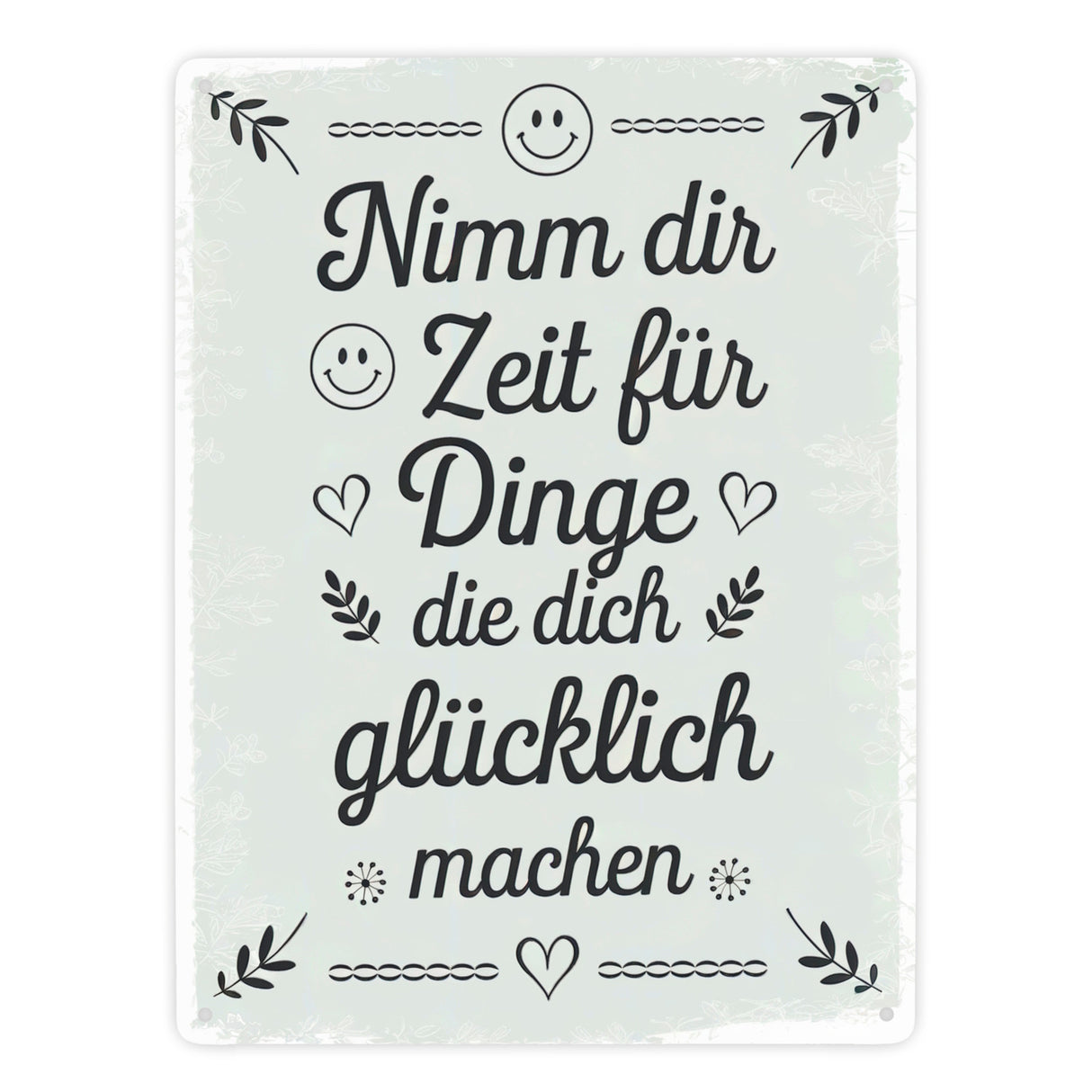 - 1x Nimm dir Zeit für Glück Metallschild in 15x20 cm in der gewählten Größe