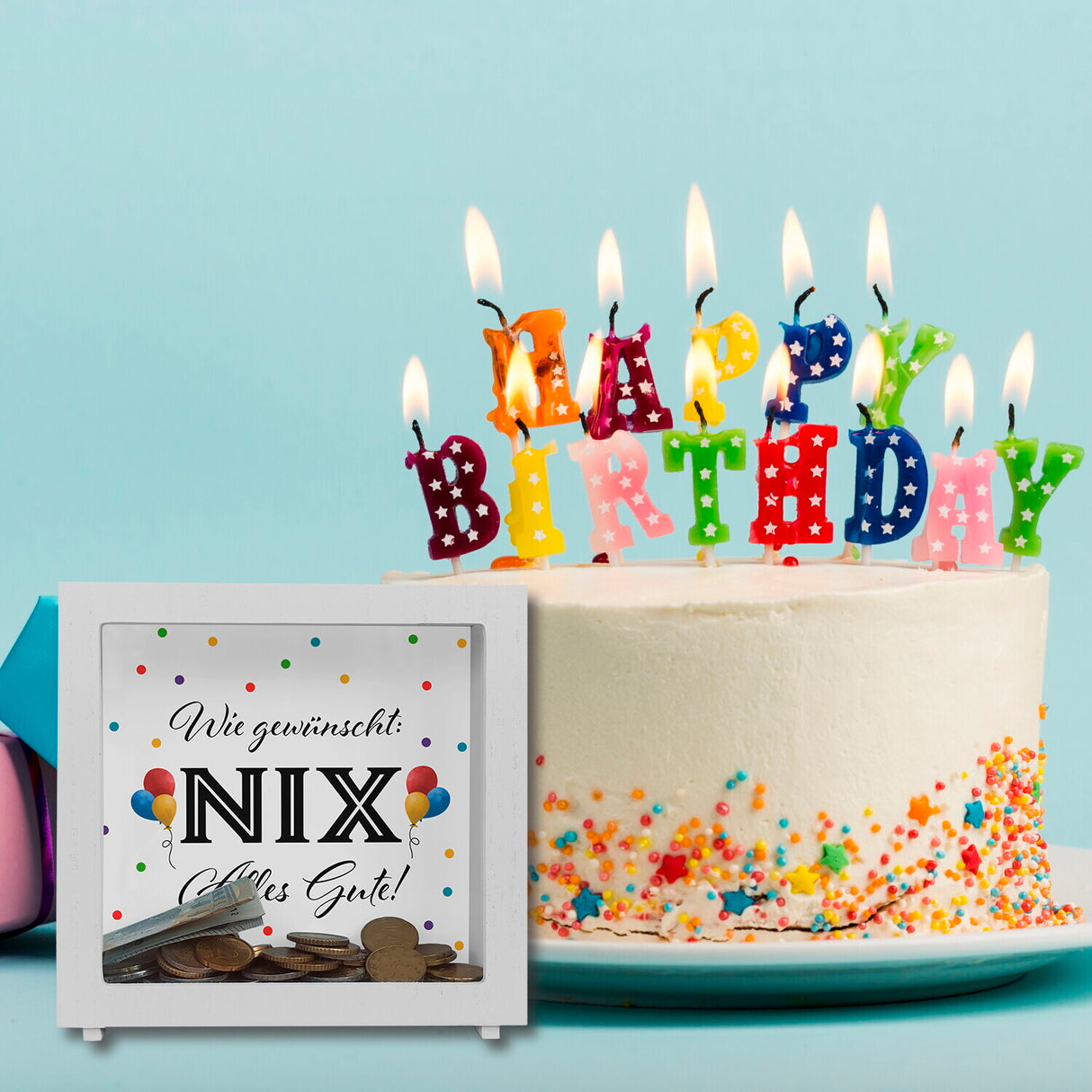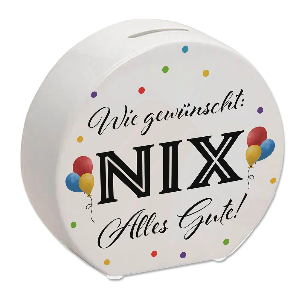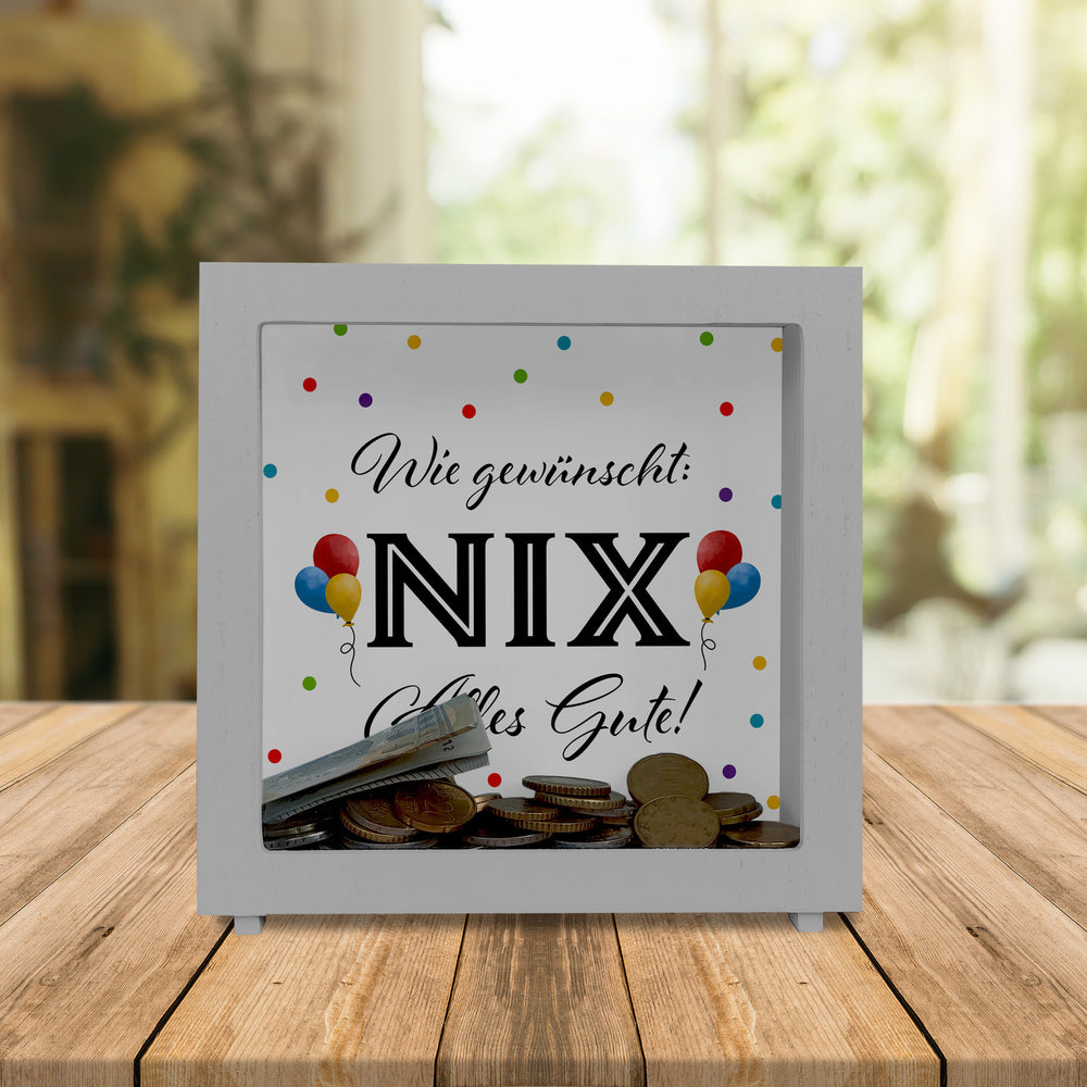 • 1x NIX gewünscht Spardose mit Spruch Alles Gute in der gewählten Ausführung