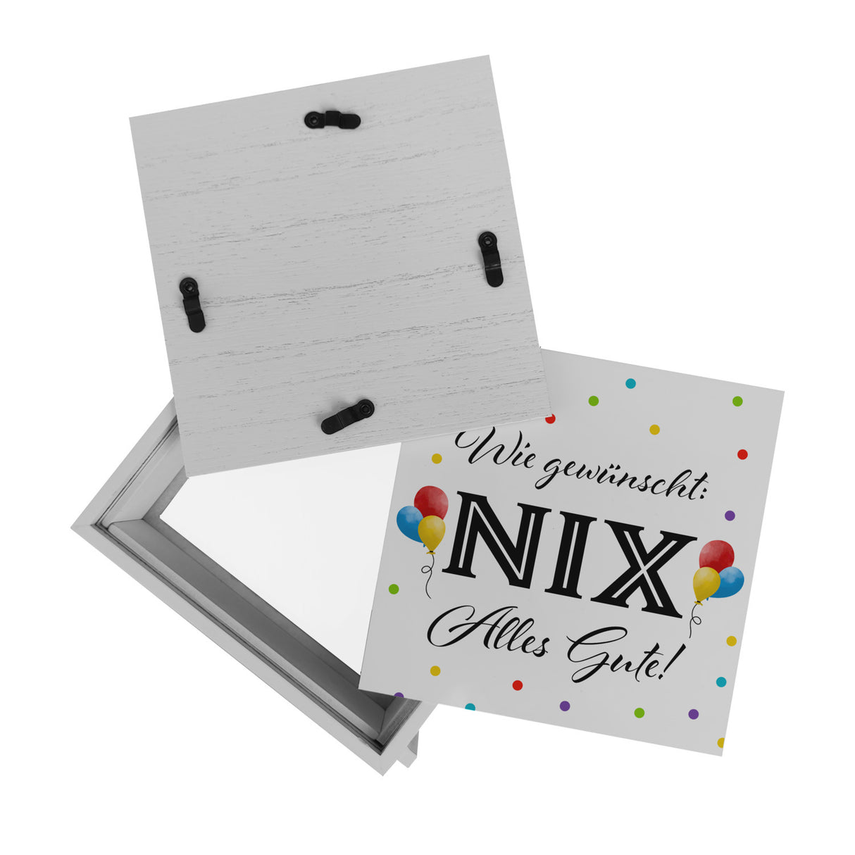 Steckt Ihr Kopf schon im Geschenke-Strudel, kreisend um die ewige Frage, was man demjenigen schenkt, der schon alles hat? Brechen Sie aus der Spirale aus und überreichen Sie zum nächsten Geburtstag die NIX gewünscht Spardose ! Diese einzigartige Spardose kommt mit einem Augenzwinkern daher und bietet genau das, was auf ihr verheißungsvoll steht: rein gar nix. Ein leeres Versprechen? Keineswegs! Es ist das einzig wahre Geschenk für all jene, die sich nichts wünschen, oder behaupten, bereits alles zu besitzen. Die Spardose ist nicht nur ein Spaßgarant, sondern wird das Herz des Beschenkten mit ihrer charmant-frechen Aussage Wie gewünscht: Nix. Alles Gute! auch im Sturm erobern. Ob schicke Holzspardose, edle Keramik oder die exklusive Rahmenversion – sie ist die humorvolle Gabe, die Lacher und breite Grinsen garantiert. Jedes Exemplar wird mit Sorgfalt und einem Schuss Humor in unserer deutschen Manufaktur bedruckt. Damit überbringen Sie eine Botschaft, die allen Anwesenden ein Vergnügen bereitet und mit Sicherheit nicht in Vergessenheit gerät. Denn manchmal ist Nichts das größte Etwas!