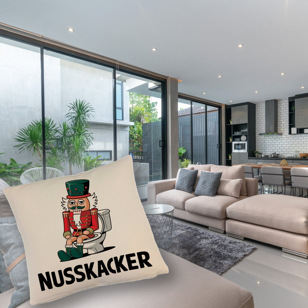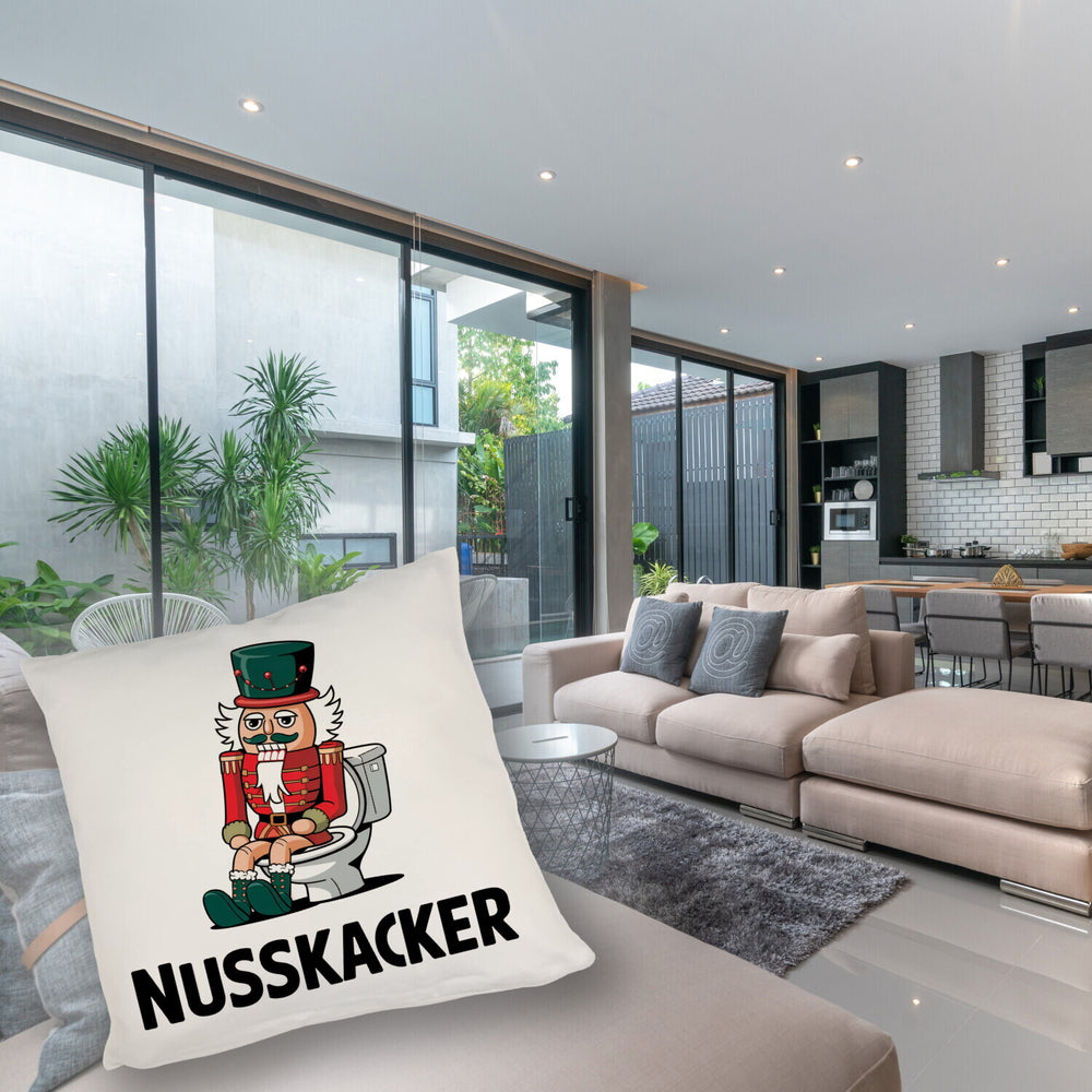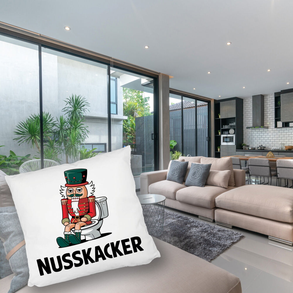 - Tauchen Sie ein in die Welt des schrägen Humors mit unserem "Nussknacker auf Toilette" Kissen! Dieses einzigartige Kissen zeigt einen Nussknacker, der auf der Porzellanschüssel seiner Bestimmung nachgeht – ein wahres Meisterwerk der humorvollen Cartoon-Illustration und ein Blickfang für jedes Sofa oder Bett.