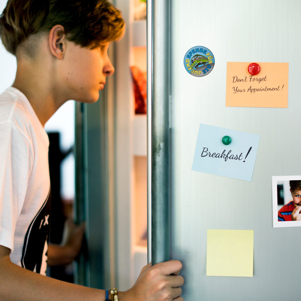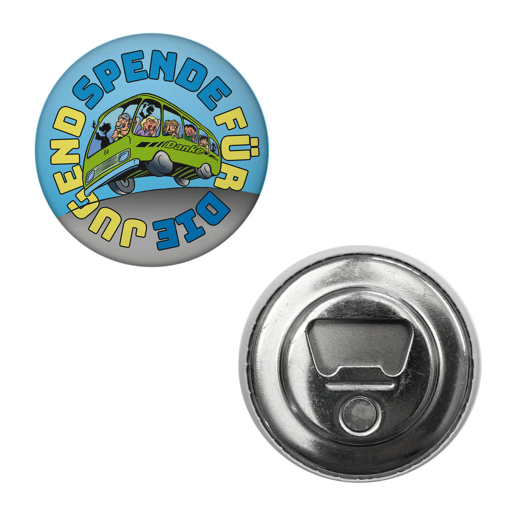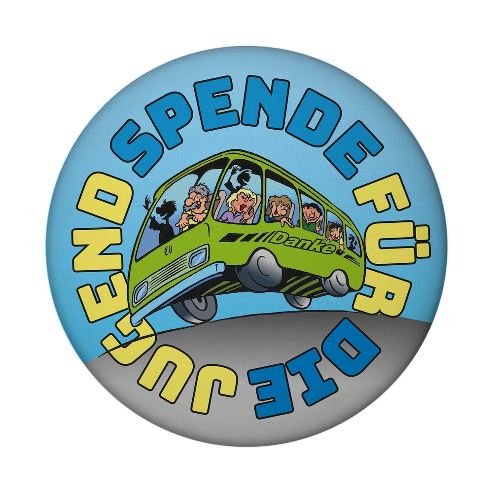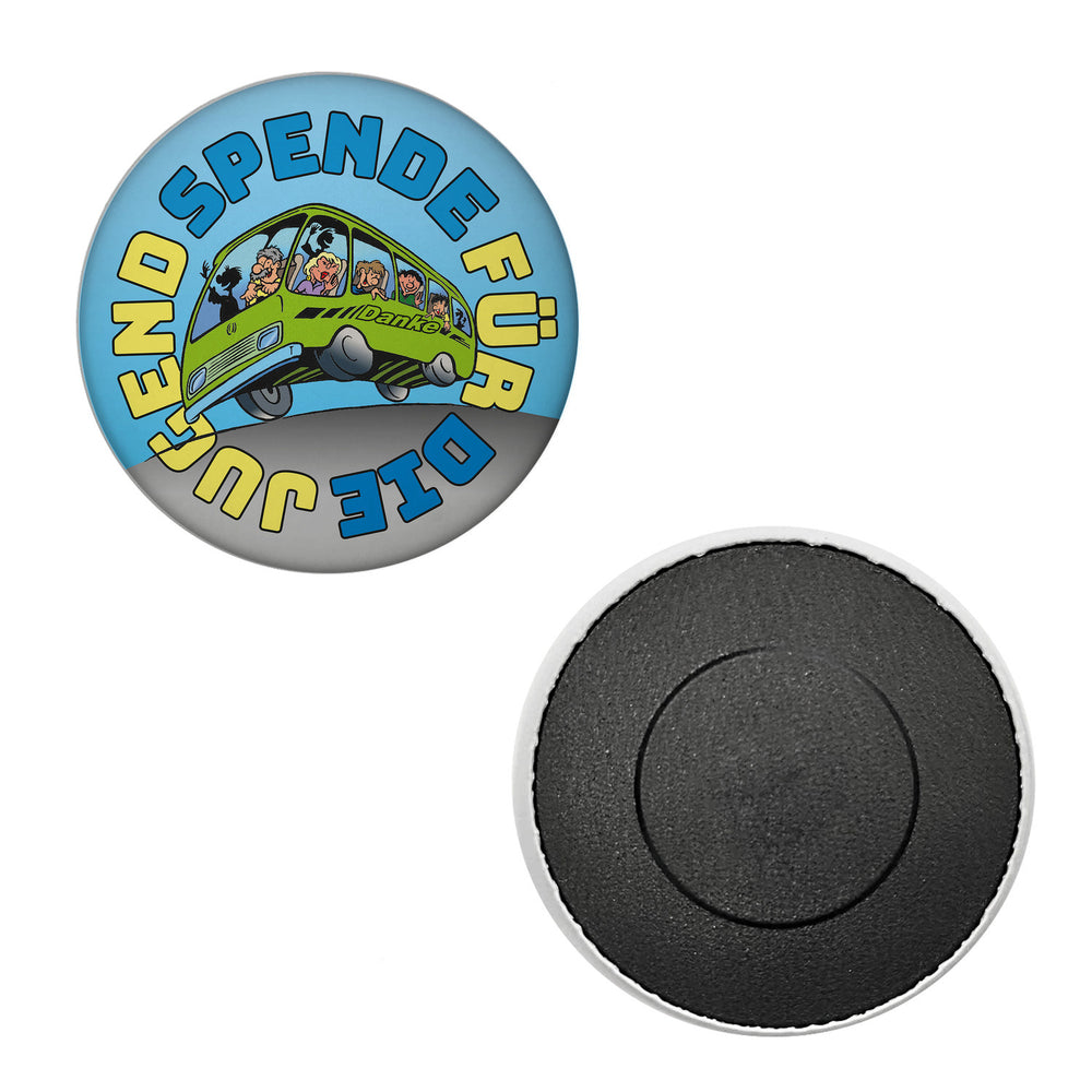 - 1x Omnibus Magnet rund mit Spruch: Spende für die Jugend. Danke in der gewählten Ausführung