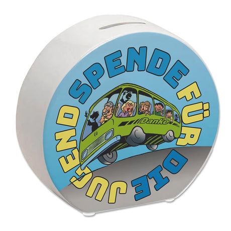 Omnibus Spardose mit Spruch: Spende für die Jugend. Danke