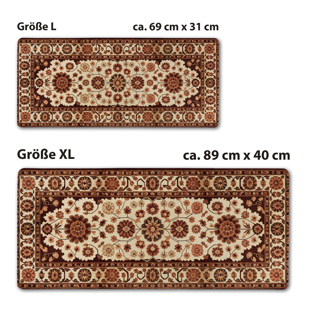 - Bringen Sie orientalischen Zauber in Ihr Arbeitsleben! Unsere Teppich Schreibtischunterlage vereint Funktion und Stil und wird mit ihren floralen Mustern und reichhaltigen Farben zum Herzstück Ihres Büros. Planen Sie Ihre Termine auf einer Unterlage, die so einzigartig ist wie Ihre Ideen. Ihre Kreativität verdient das Beste!