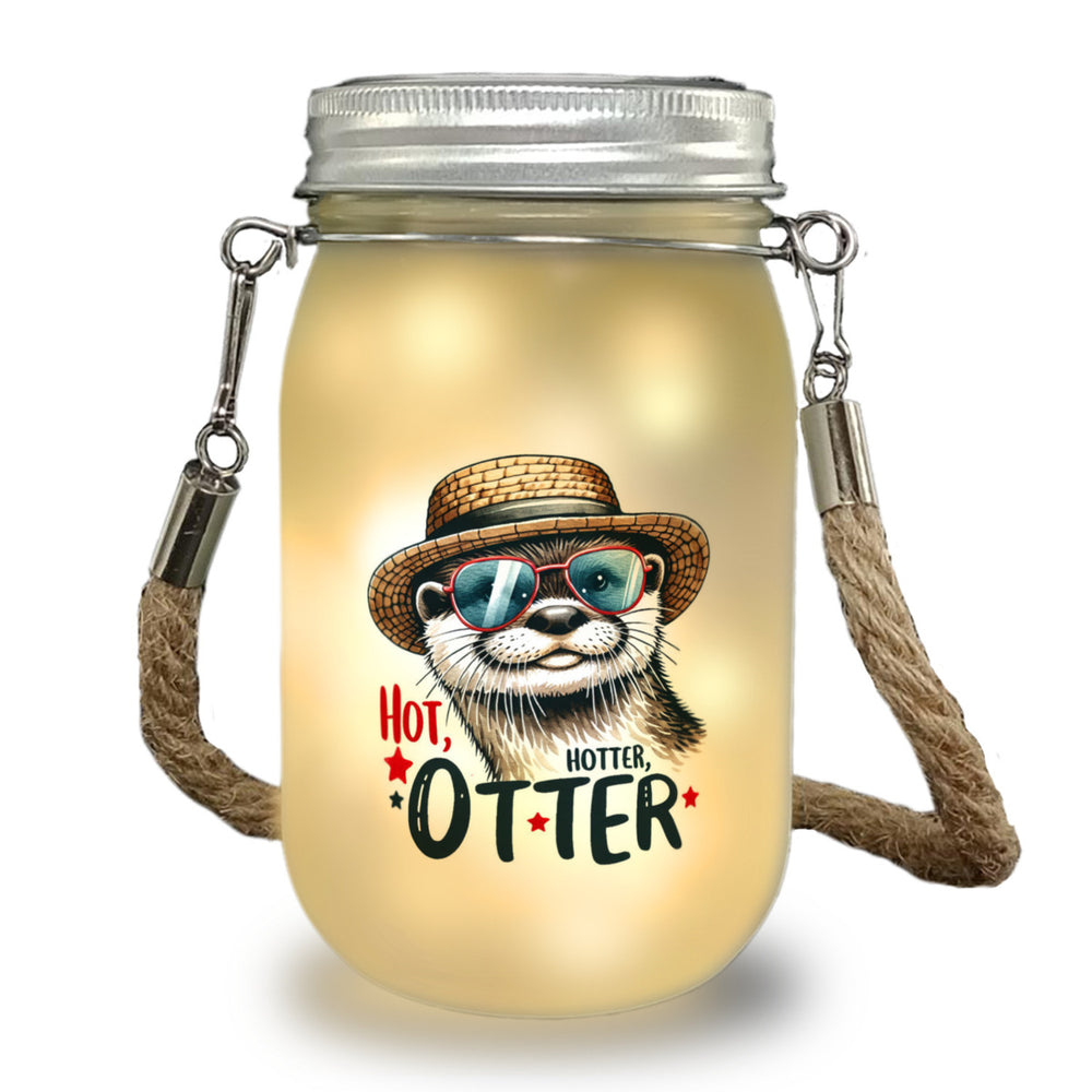 Otter mit Sonnenbrille und Strohhut Solarlicht mit Spruch Hot Hotter Otter