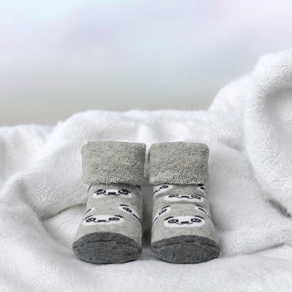 - Ausgezeichnetes Design trifft auf flauschige Gemütlichkeit: Diese grauen Kuschelsocken zieren unzählige, süße Pandaköpfe, die Baby wie Mama zum Quietschen bringen. Ein echter Hingucker, der nicht nur warm hält, sondern auch Herzen erobert – und das im doppelten Pack für doppeltes Kuschelvergnügen!