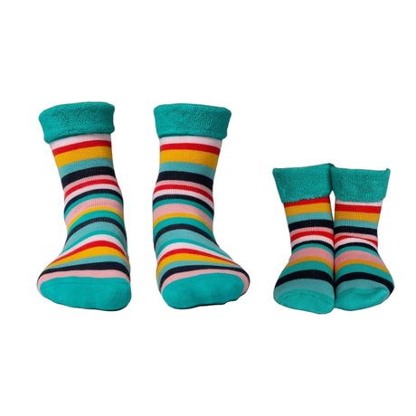 Bunte Streifen Socken Cucamelon Kuschelsocken für Mama und Kind in 38-40 & 1-4 Jahre (2 Paare)