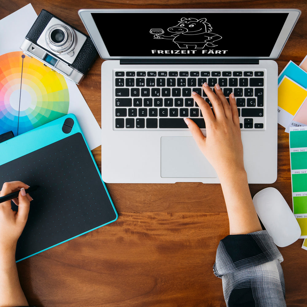 - Diese witzige Tasse zeigt ein cartoonartiges Pferd in Weiß auf schwarzem Grund, das mit einem Glas Wein in der Hand fröhlich lächelt. Der freche Spruch „FREIZEIT FÄRT“ steht in fetten, weißen Buchstaben darunter und bringt garantiert gute Laune in jeden Morgen. Ein humorvolles Must-have für Pferde- und Weinliebhaber!