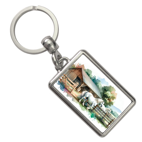 weiße Pferde auf der Koppel Schlüsselanhänger