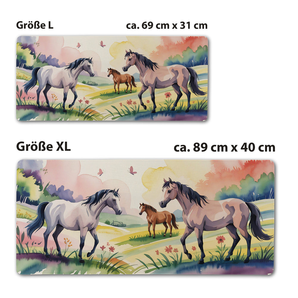 - 1x Pferde mit Schmetterlingen Schreibtischunterlage 69x31cm XXL Mauspad für Mädchen in der gewählten Größe