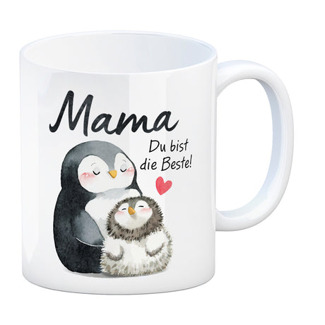 Pinguin Mutter und Kind Kaffeebecher mit Spruch Mama du bist die Beste