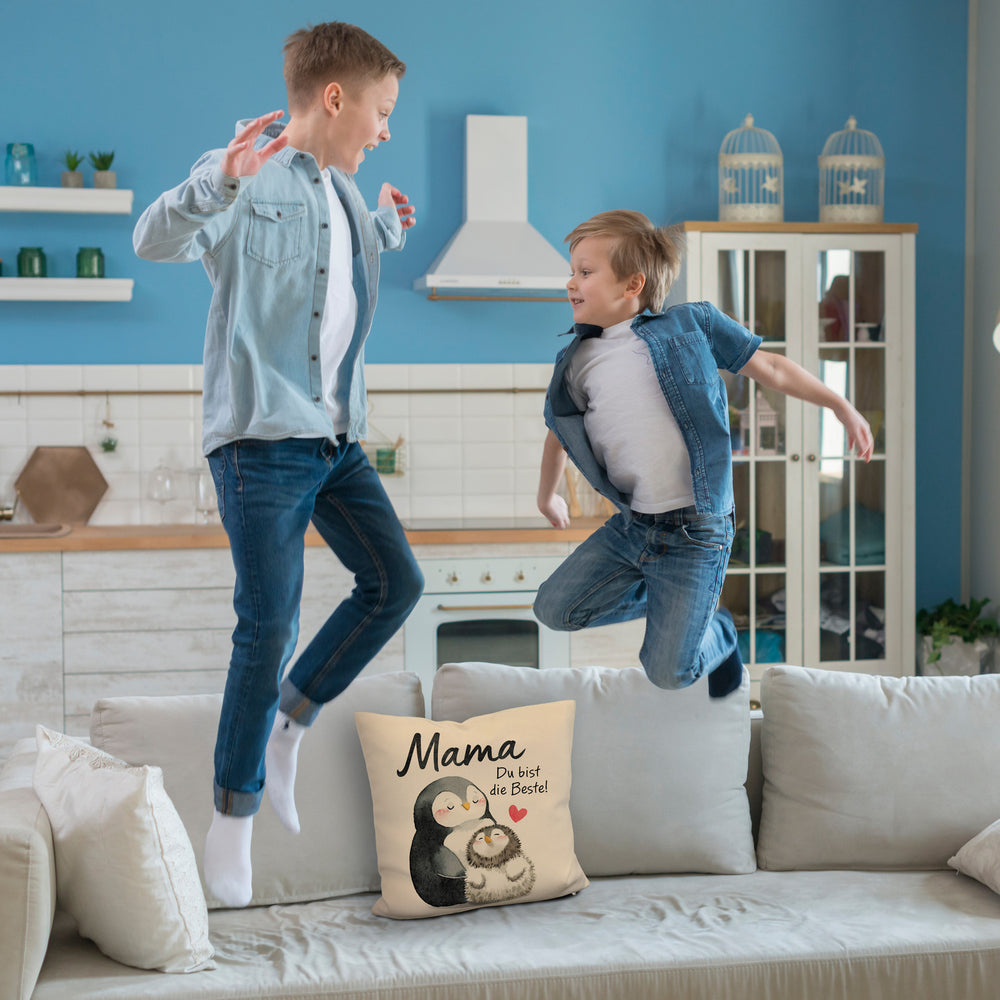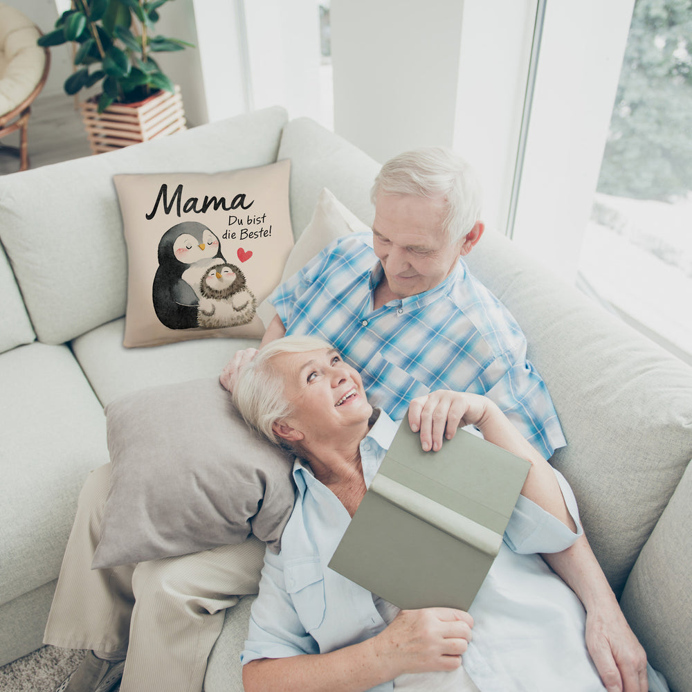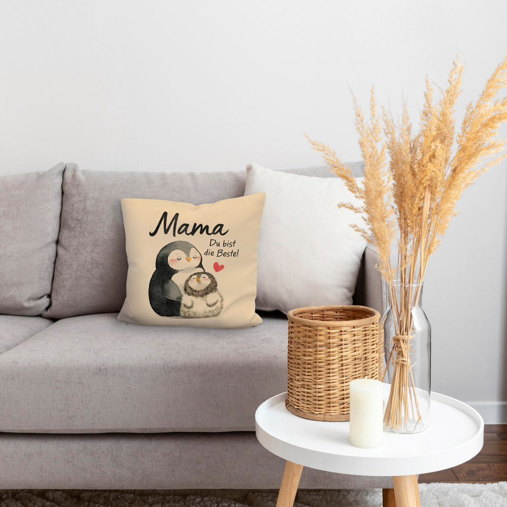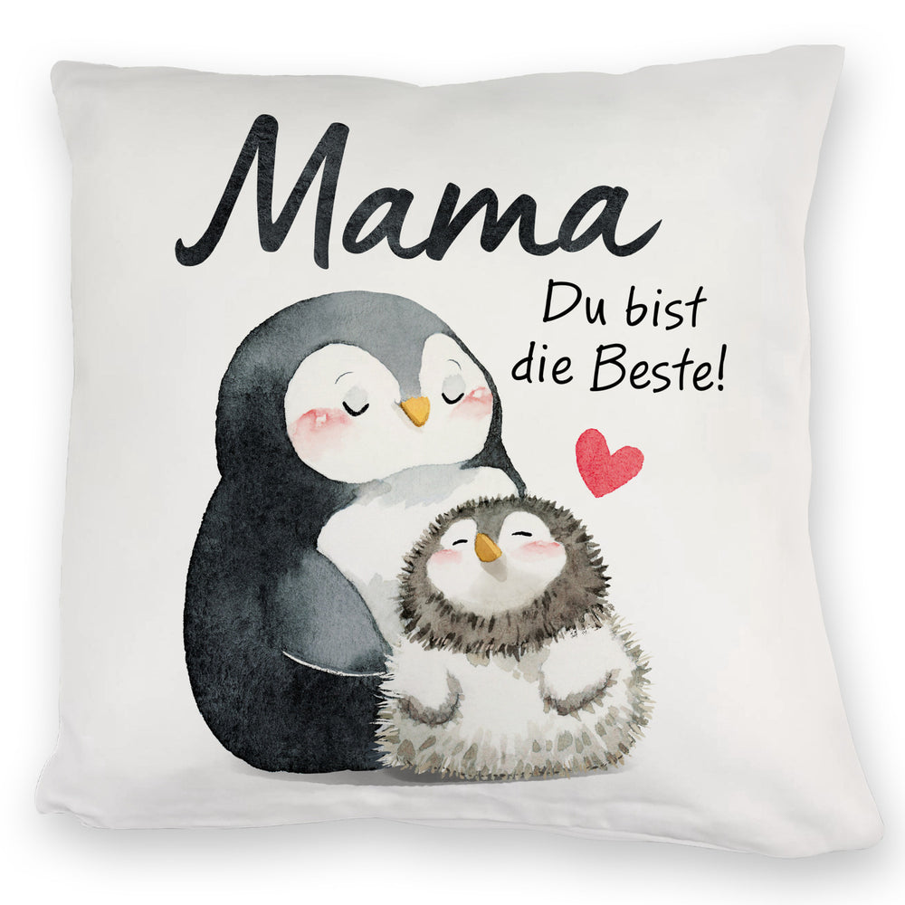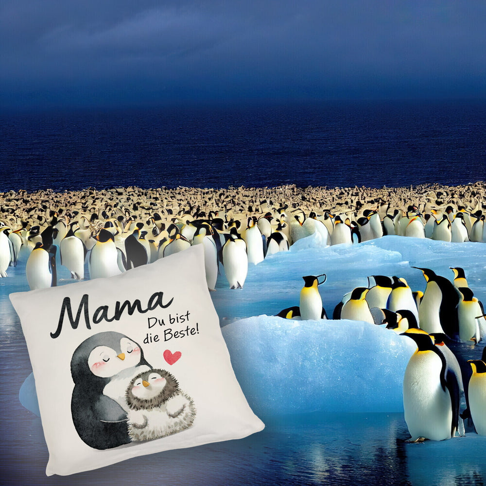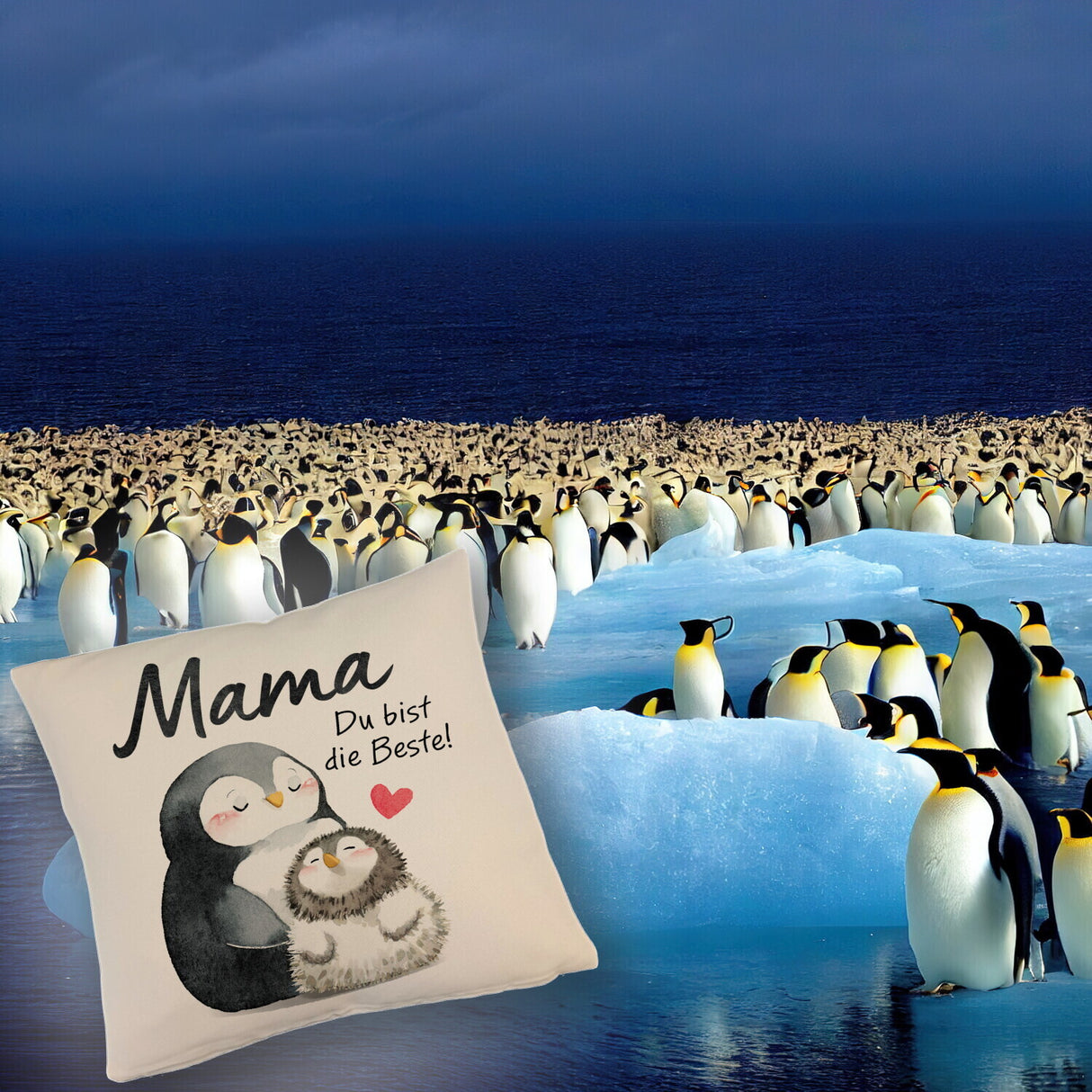 Pinguin Mutter und Kind Kissen mit Spruch Mama du bist die Beste