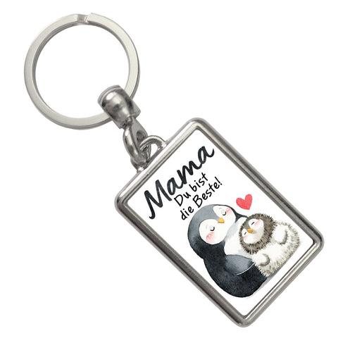 Pinguin Mutter und Kind Schlüsselanhänger mit Spruch Mama du bist die Beste