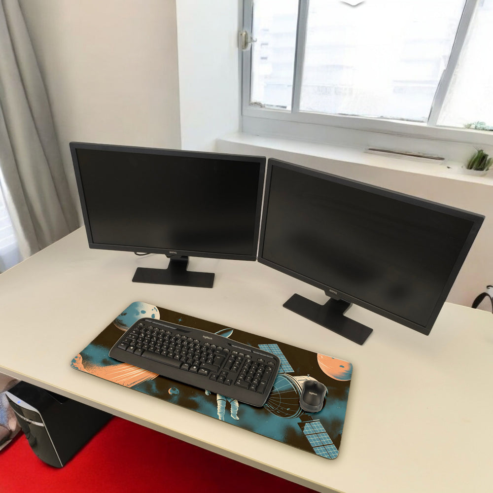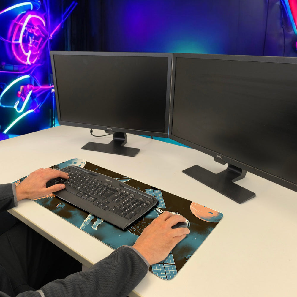 Heben Sie ab in neue Dimensionen mit der Raketenstart Astronaut Schreibtischunterlage – die ultimative XXL-Mauspad-Lösung für alle, die das Unbekannte lieben! Stellen Sie sich vor, selbst Kapitän Ihrer kosmischen Reisen zu werden, während Sie von einem eindrucksvollen Raketenstart umgeben sind. Die leuchtend orangefarbene Flamme der Rakete und der schwebende Astronaut in seinem schwarzen Helm entführen Sie in ein Abenteuer, das Ihren Schreibtisch zum interstellaren Blickfang macht.Dieses stilvolle Gadget ist in zwei beeindruckenden Größen erhältlich und verwandelt jeden Arbeitsplatz in ein kleines Universum. Egal ob Sie Dokumente prüfen, spannende Spiele zocken oder einfach nur Ihrer Kreativität freien Lauf lassen – diese Schreibtischunterlage bringt das Universum zu Ihnen nach Hause. Die Kombination aus lebendigen Farben und futuristischen Elementen macht sie zu einem Muss für Weltraum- und Technikbegeisterte gleichermaßen.Mit ihrer detailverliebten Gestaltung und dem auratischen Türkis des kosmischen Hintergrunds, eignet sich die Unterlage auch hervorragend als Geschenk für alle, die sich gerne in ferne Galaxien träumen. Warum also noch zögern? Mischen Sie Alltag mit Weltraumabenteuer und schicken Sie Ihre Kreativität auf eine Reise, die keine Grenzen kennt!