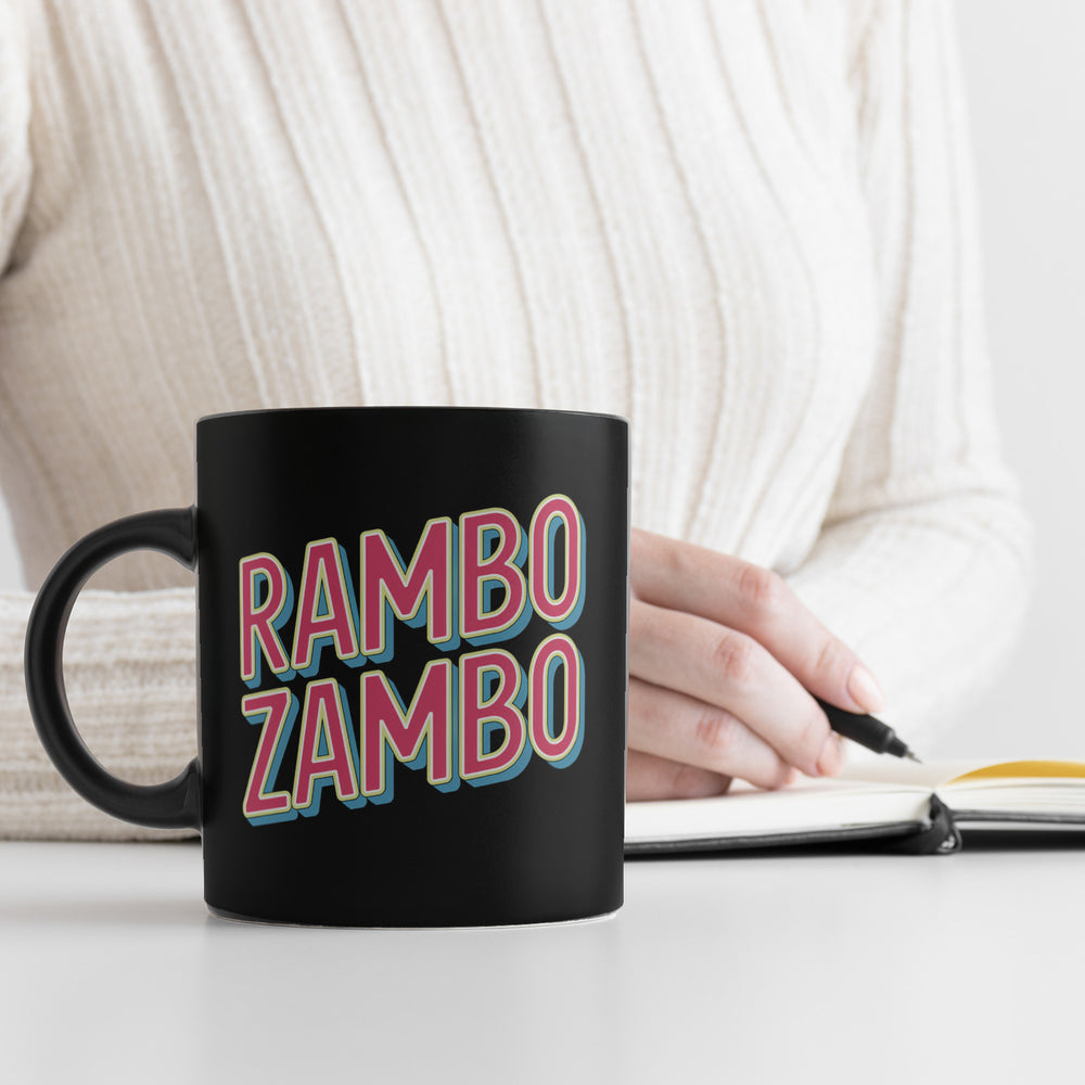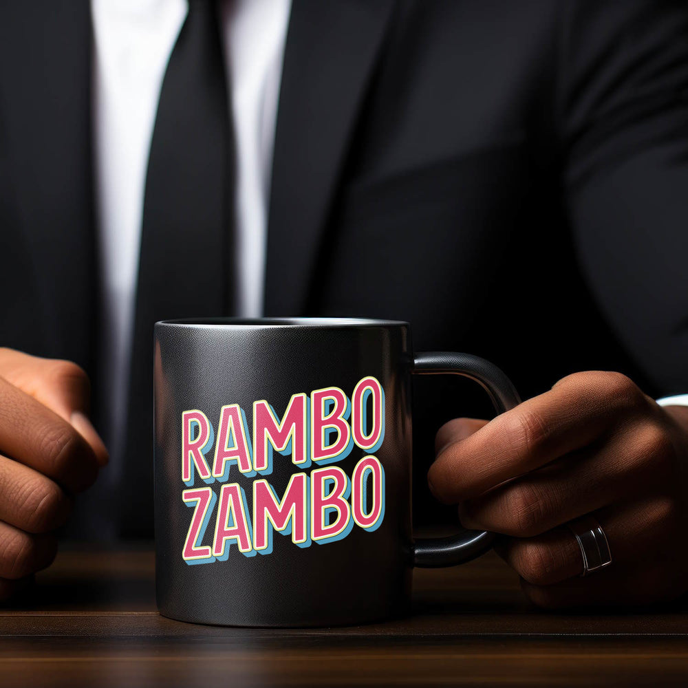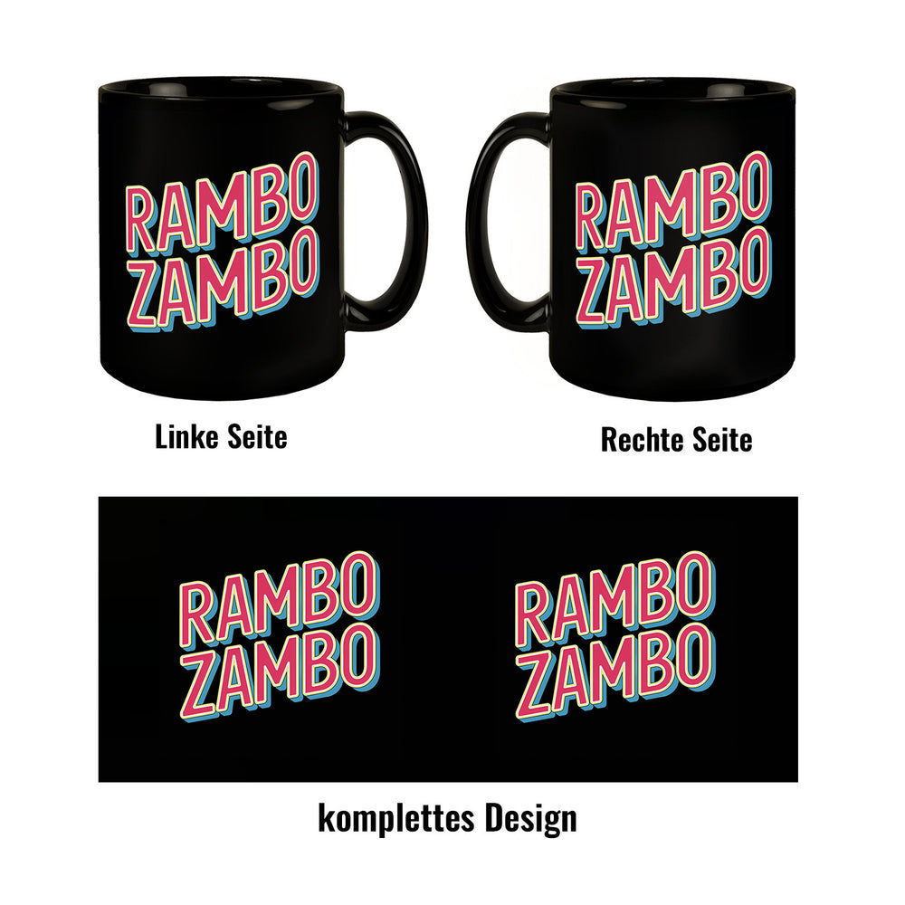 - Hol dir die Rambo Zambo Tasse und setze ein humorvolles Statement! Mit Liebe designed und bedruckt, überzeugt sie durch erstklassige Qualität. Ob für dich selbst oder als Geschenk – diese Tasse zaubert garantiert ein Lächeln ins Gesicht. Schlag zu und genieße deinen Kaffee mit einem Augenzwinkern!