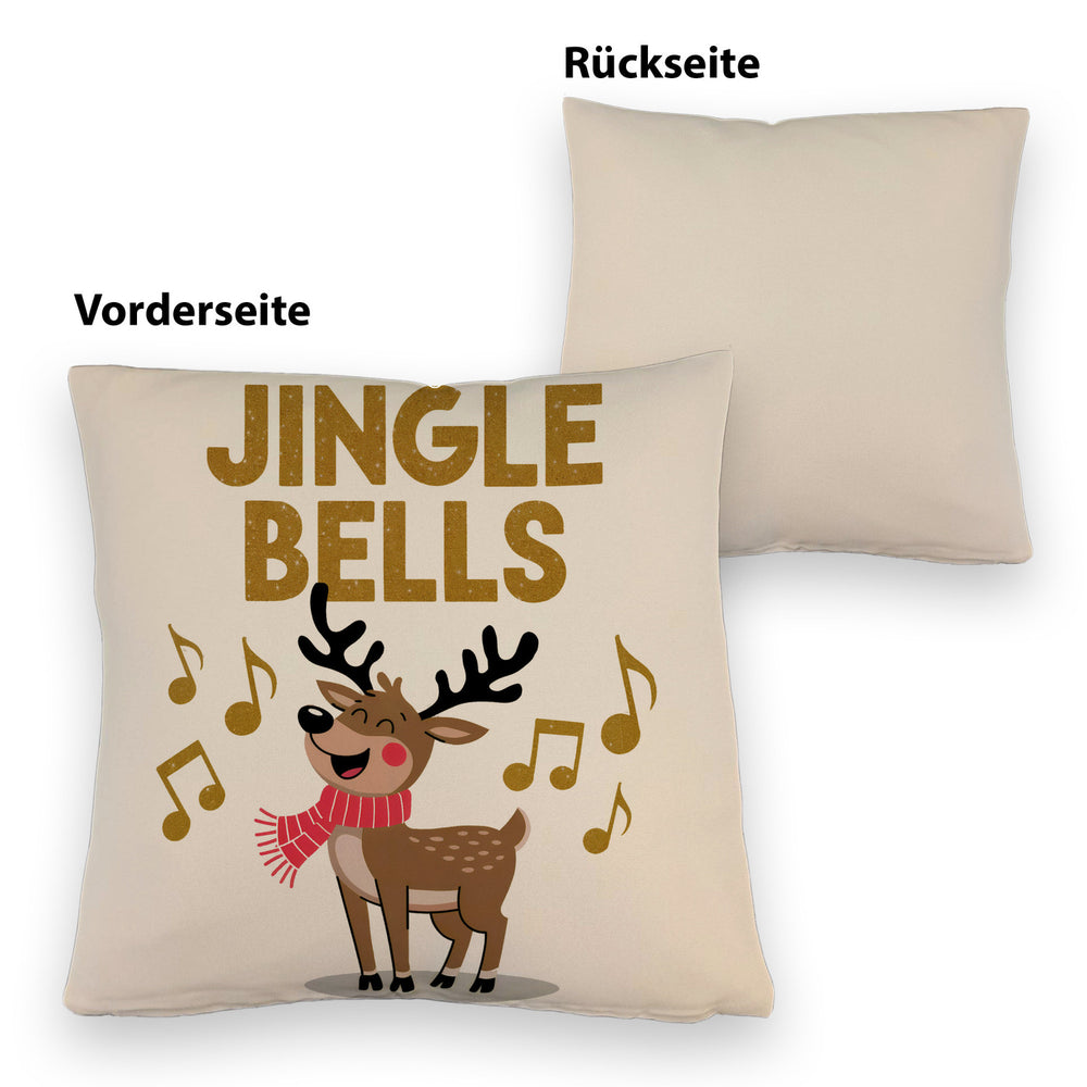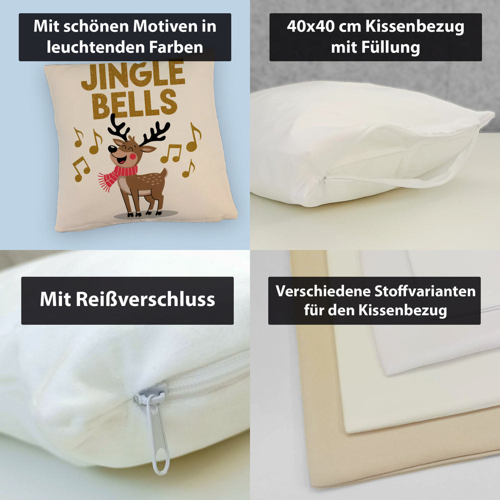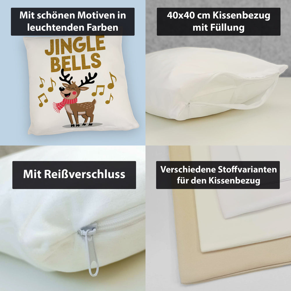 - 1x Rentier mit rotem Schal - JINGLE BELLS Kissen in der gewählten Ausführung